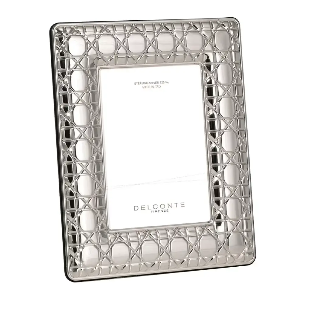 The glaring look of this sterling silver 925 frame lends it eccentric quality without renouncing elegance. Photographs (13x18cm) of precious moments will be splendidly enhanced by its faceted texture, producing light reflections that chase each other through captivating interactions. The frame is 4cm wide and features a rear side with a supporting element fully covered with natural leather. Please contact the Concierge for size variants and pricing.
