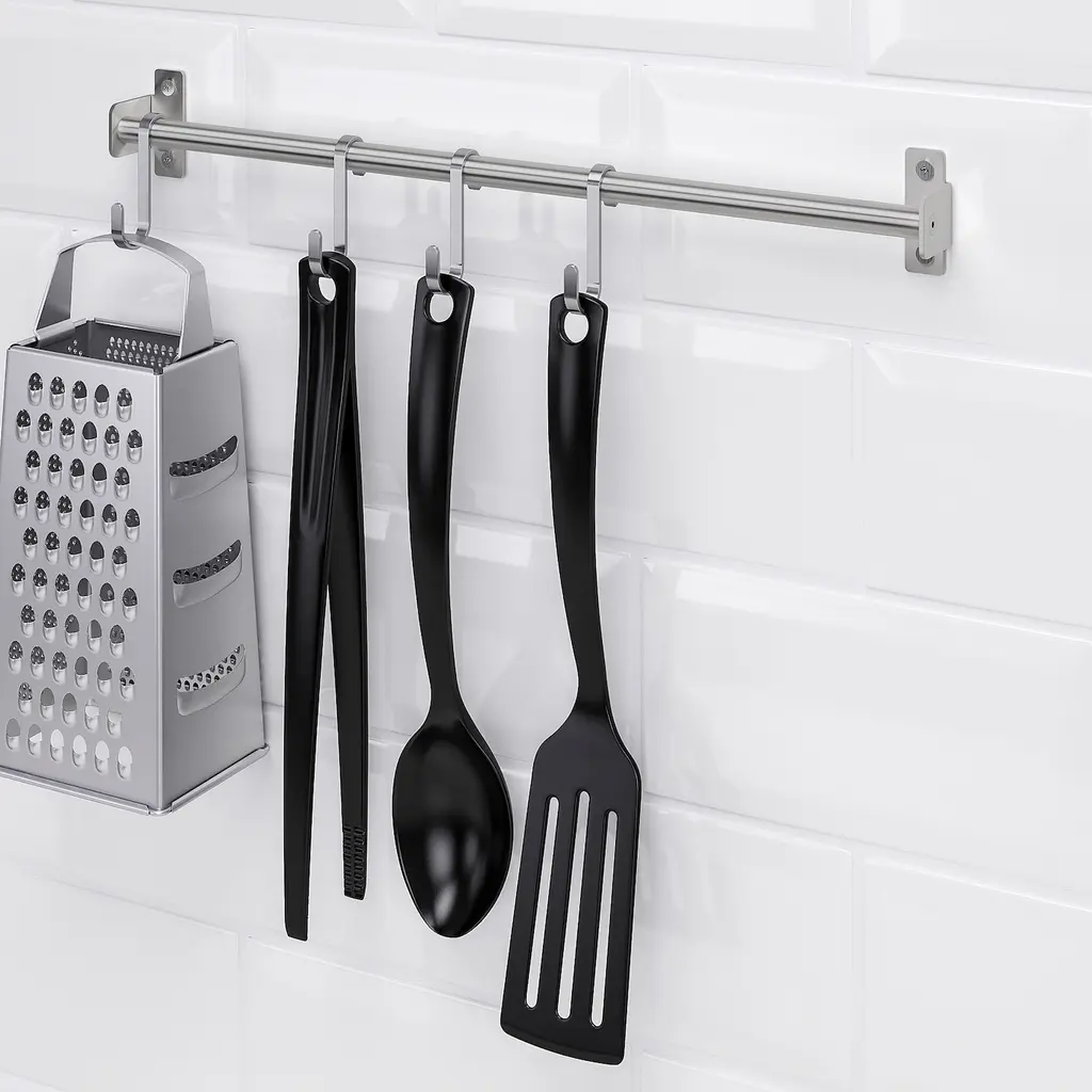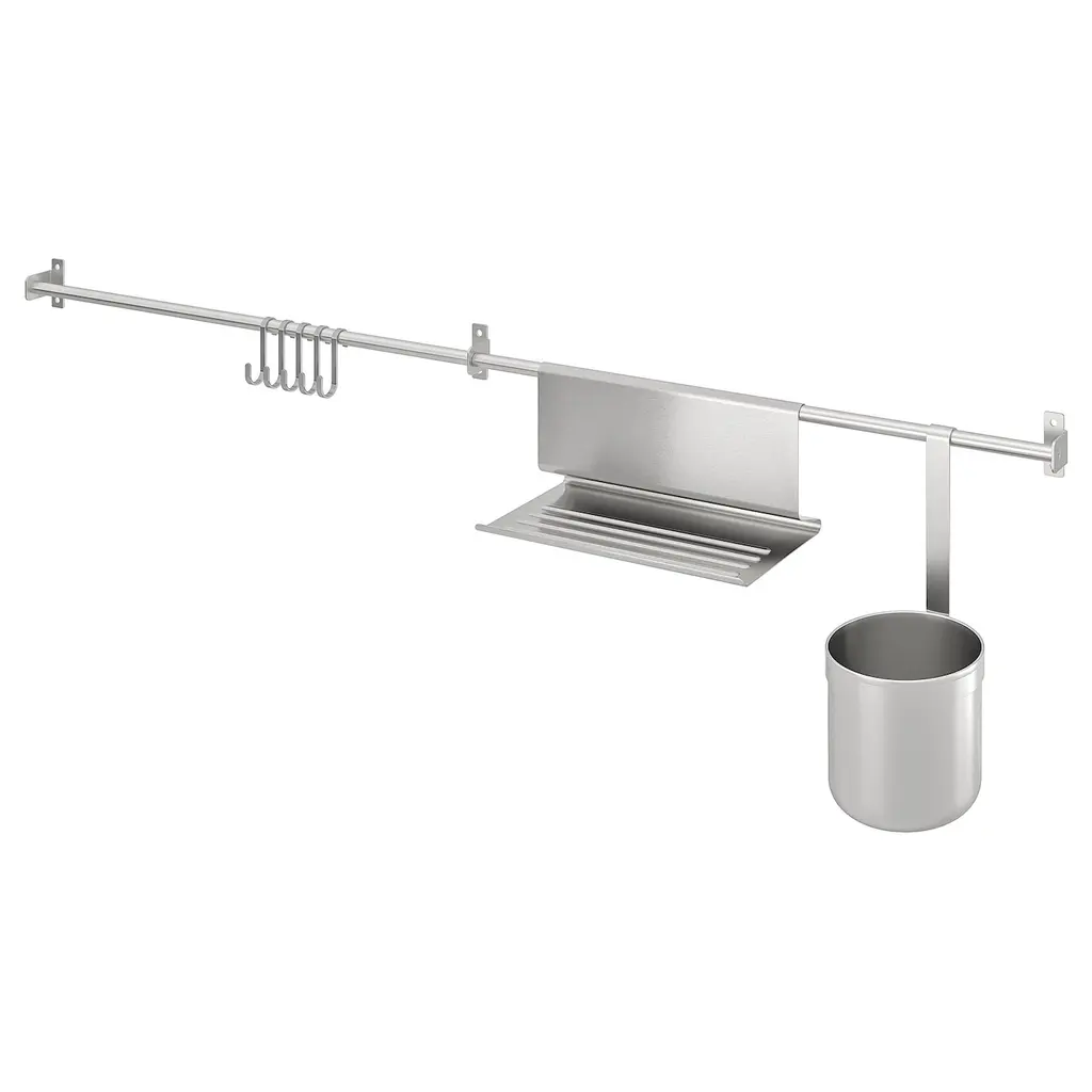 KUNGSFORS Rail - stainless steel 15 ¾ ". Saves space on the countertop Can also be used as a towel rail or a pot lid rack. You can free up space on your countertop by hanging accessories on the rail. Can be used in high humidity areas. Use the included wall brackets for wall mounting.