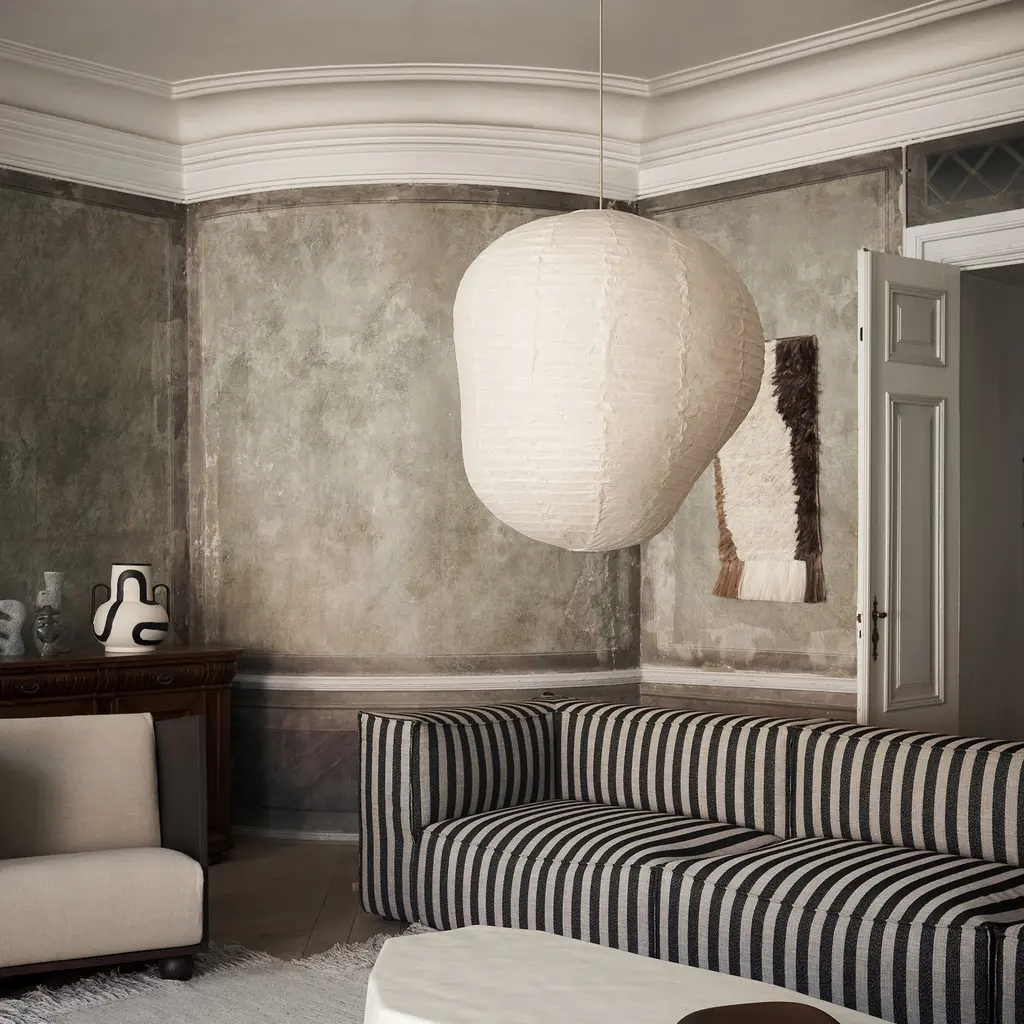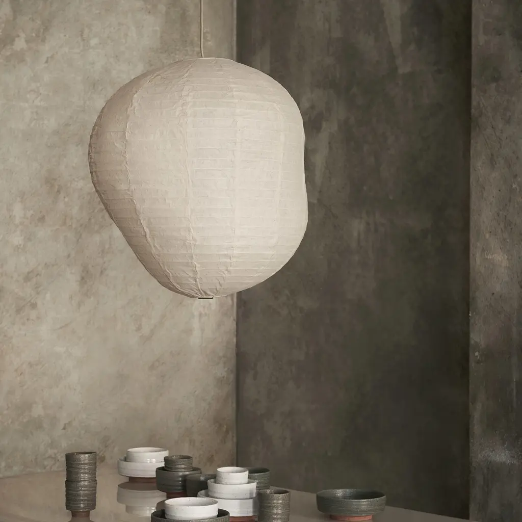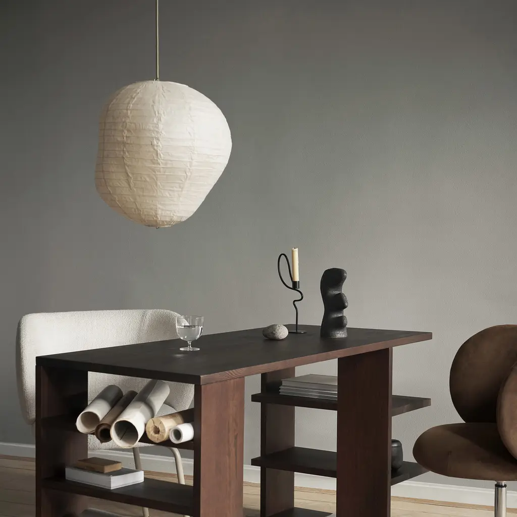 Stealing the spotlight with a minimalist design, the Ferm Living Kurbis Lampshade takes inspiration from pumpkins and squash for its asymmetric shape. The organic design offers a creative twist on classic spherical pendant lights, providing a fun way to add a dramatic accent to a room’s décor. Also inspired by traditional rice paper lanterns, Kurbis is made from Washi paper. The material has a delicate texture and a horizontal line pattern, enriching the light with a tactile dimension. A great choice to create a warm ambience, the Ferm Living Kurbis Lampshade comes in three convenient sizes, to suit all kinds of rooms, from more compact to large. Additionally, you can install all three sizes in a cluster to create a spectacular sculpture of light in an open-plan space.
