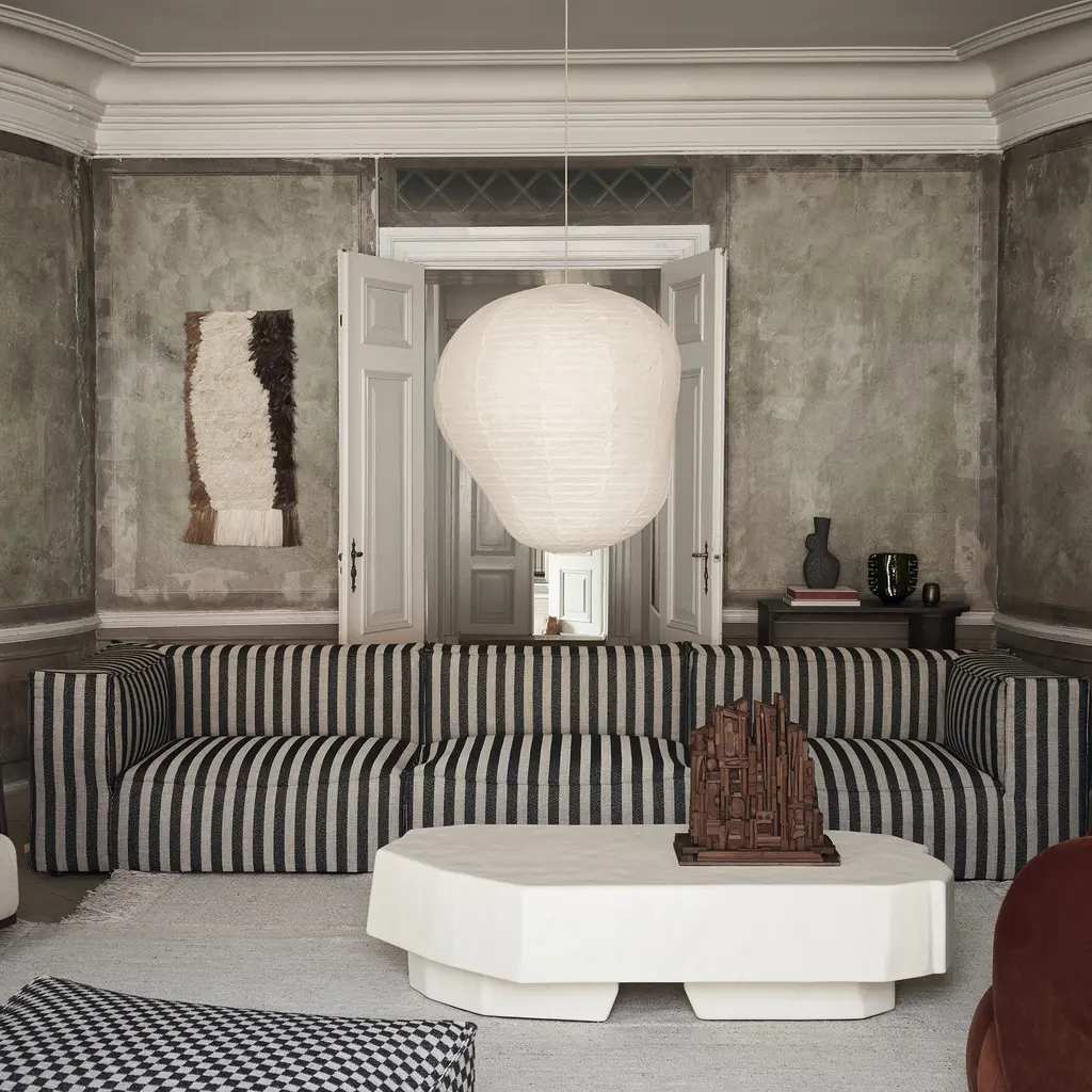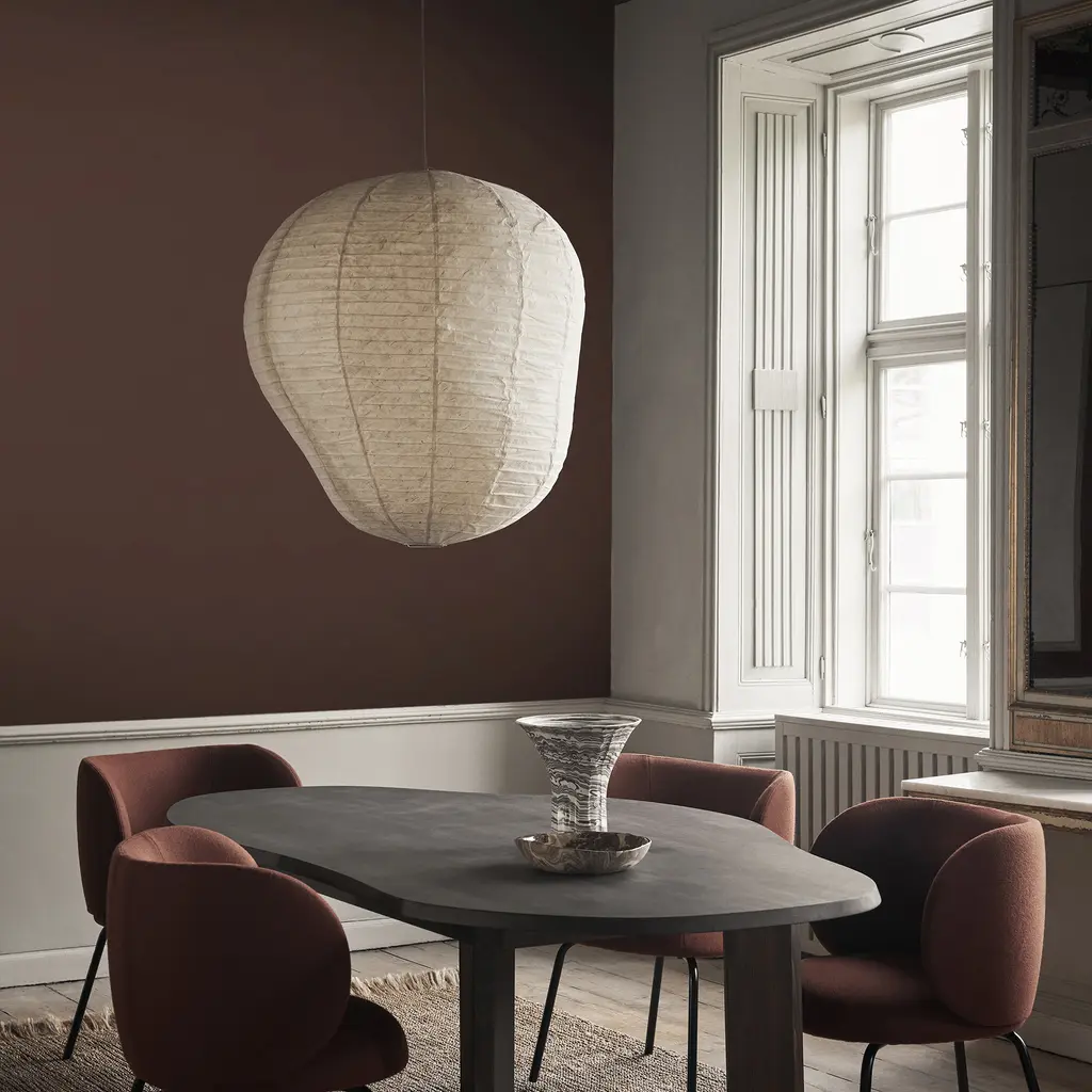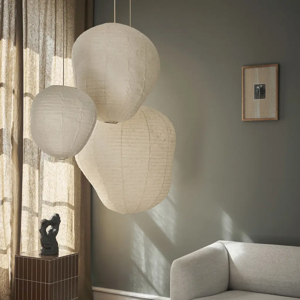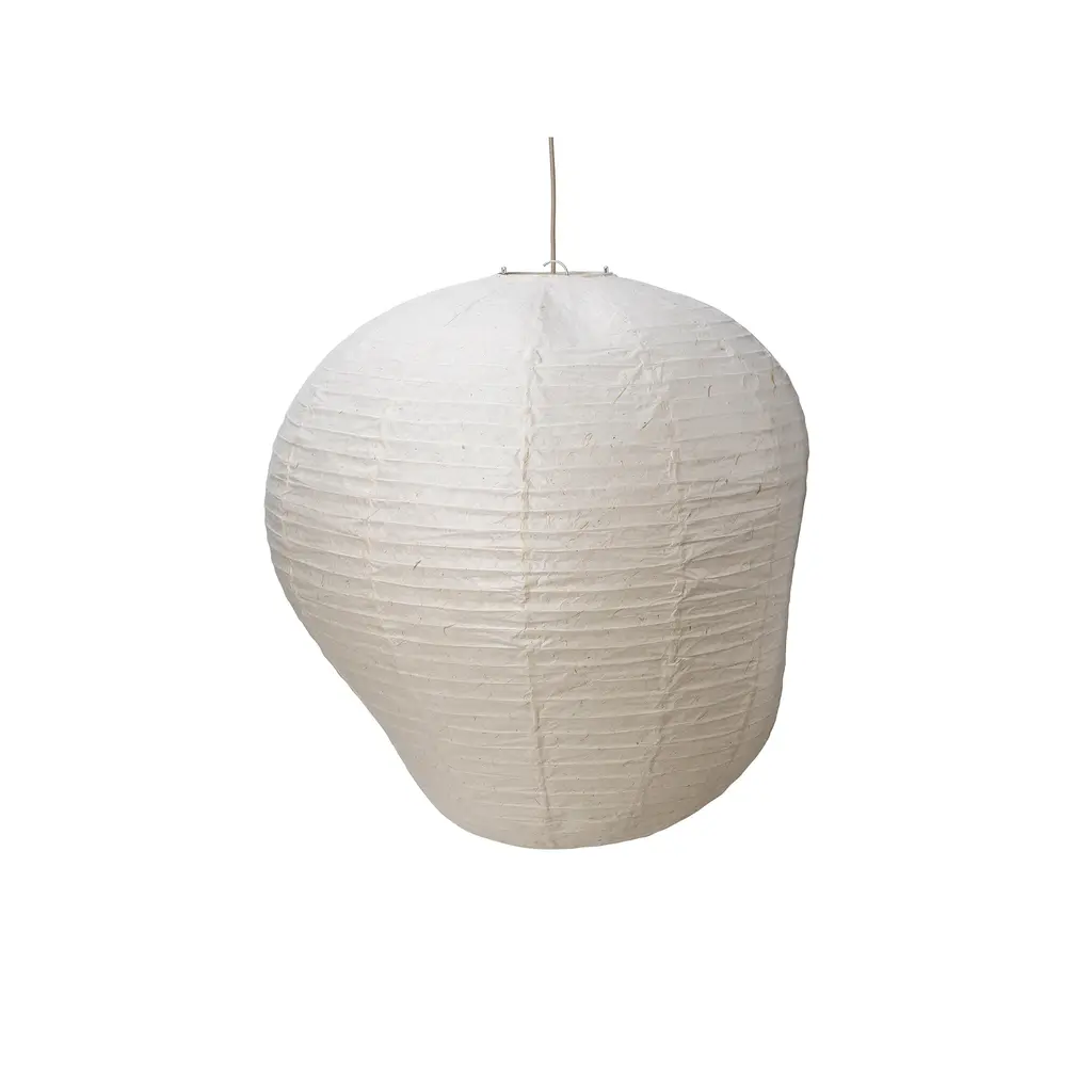 Stealing the spotlight with a minimalist design, the Ferm Living Kurbis Lampshade takes inspiration from pumpkins and squash for its asymmetric shape. The organic design offers a creative twist on classic spherical pendant lights, providing a fun way to add a dramatic accent to a room’s décor. Also inspired by traditional rice paper lanterns, Kurbis is made from Washi paper. The material has a delicate texture and a horizontal line pattern, enriching the light with a tactile dimension. A great choice to create a warm ambience, the Ferm Living Kurbis Lampshade comes in three convenient sizes, to suit all kinds of rooms, from more compact to large. Additionally, you can install all three sizes in a cluster to create a spectacular sculpture of light in an open-plan space.