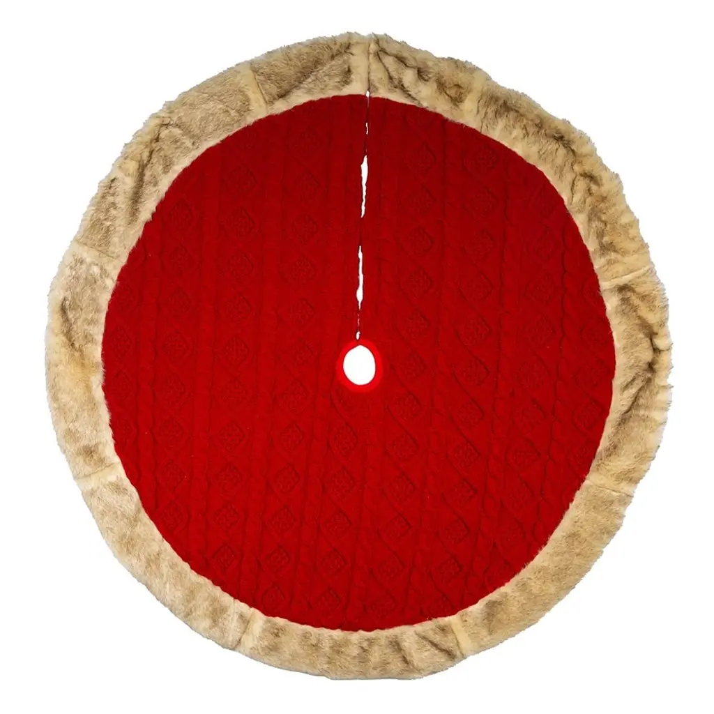 Kurt Adler 48-Inch Red Knit Tree Skirt With Tan Faux Fur Border - Red