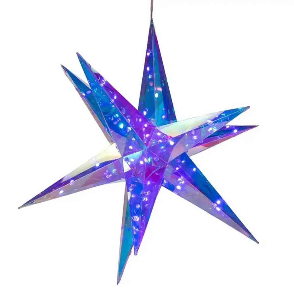 Kurt Adler's 17.75" 60-Light RGB Smart LED Holographic Starburst is a cutting-edge and visually striking decorative lighting piece that adds a touch of modern elegance to your indoor or outdoor decor. This starburst light features advanced LED technology, smart functionality, and a holographic design, making it a standout addition to any space. This starburst measures approximately 17.75 inches in diameter, its design is inspired by the natural shape of a starburst, with multiple thin, radiating arms extending outward from a central point. The holographic design adds a shimmering and multidimensional effect to the light. Equipped with 40 bright and energy-efficient LED lights, the starburst emits a stunning and vibrant glow. The starburst is designed to be weather-resistant, making it suitable for both indoor and outdoor use. It's perfect for enhancing your holiday decorations, outdoor gatherings, parties, or simply adding a touch of magic to your living space. It is a versatile and visually captivating lighting option, perfect for those who appreciate modern design and the convenience of smart technology.