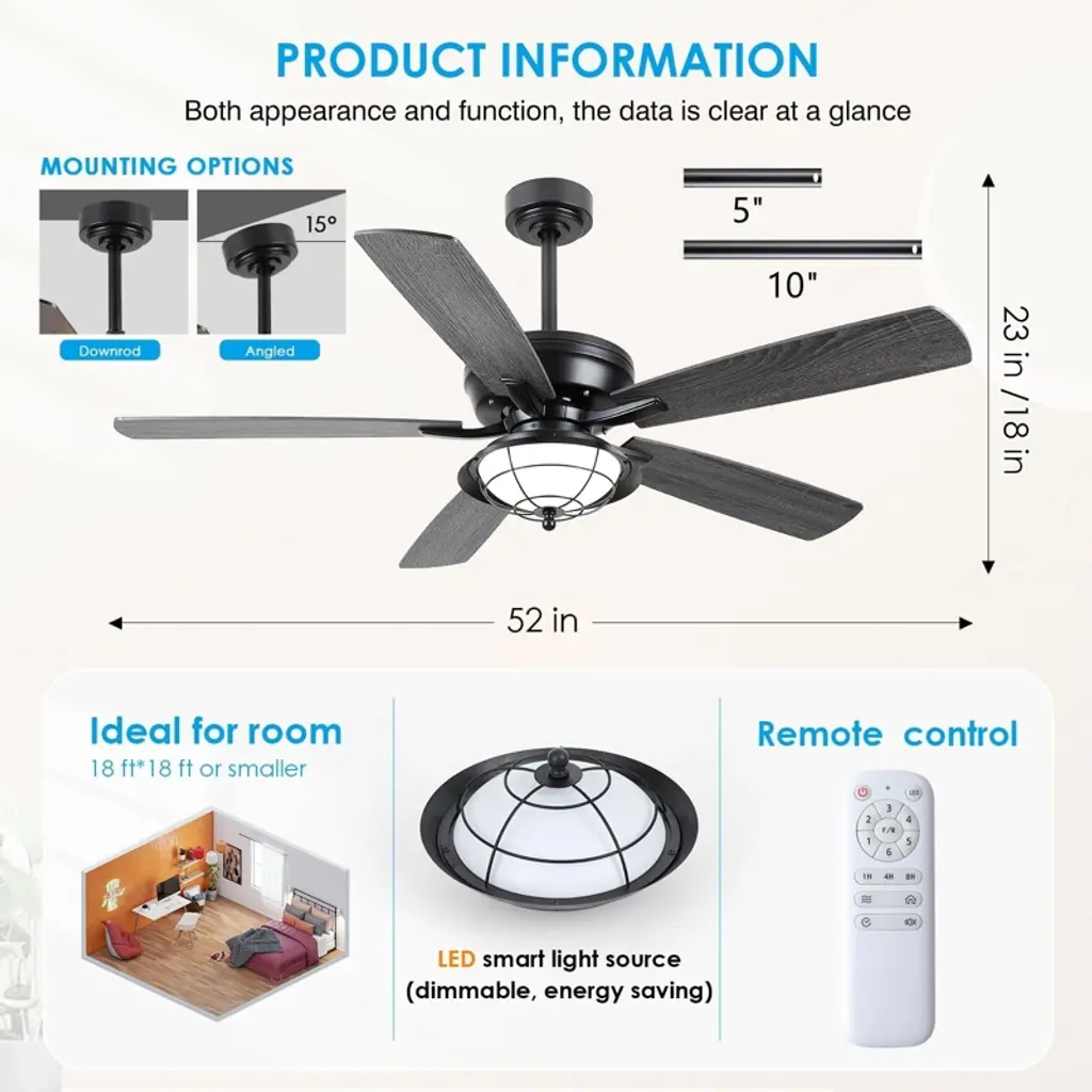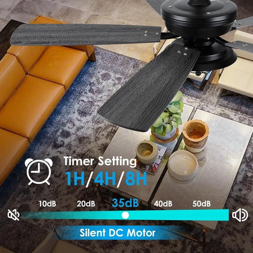 This 52-inch all-weather ceiling fan delivers year-round comfort for both indoor and outdoor spaces, featuring a durable, waterproof design that withstands sun, rain, and corrosion. Its whisper-quiet DC reversible motor (<35dB) offers 6-speed airflow control with summer cooling and winter warmth circulation, while the convenient remote allows easy adjustment of fan speeds and 1/4/8-hour timer settings. The smart light memory function automatically recalls your preferred lighting preferences. Easy to install with included 5" and 10" downrods and sloped ceiling compatibility (up to 15°), this energy-efficient fan combines practical functionality with durable construction, backed by reliable customer support - perfect for patios, gazebos, bedrooms, and living areas.