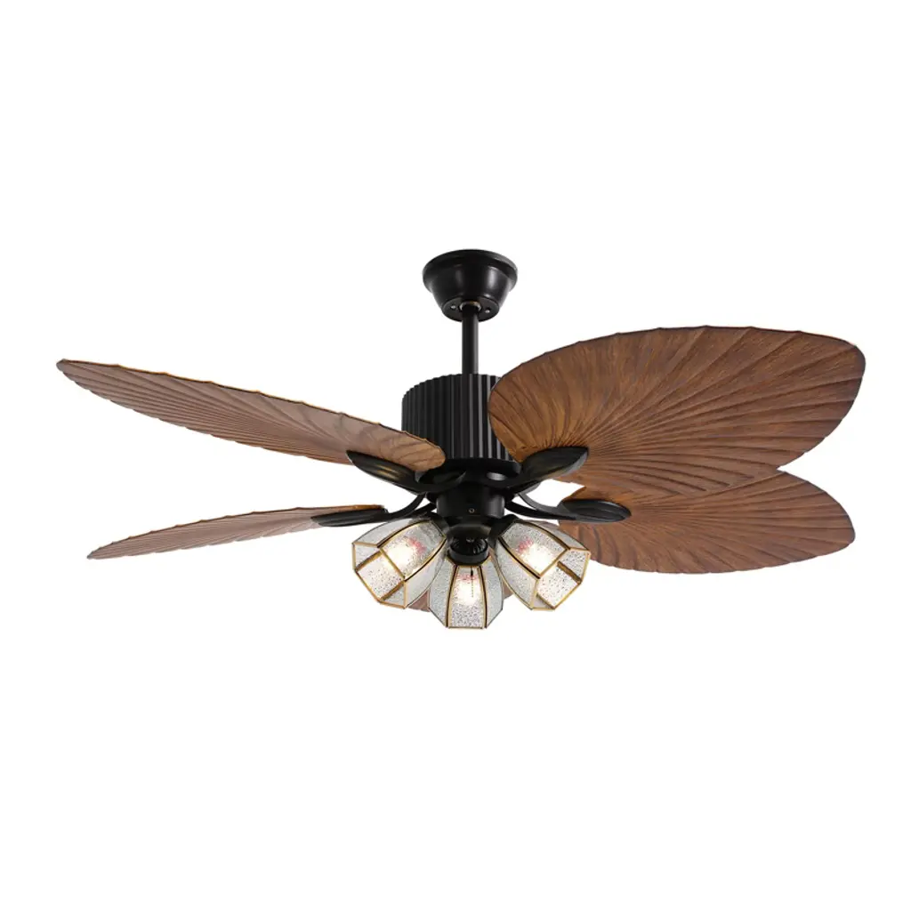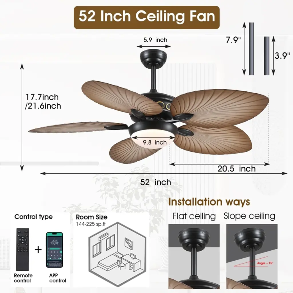 Kviflon 52 Inches Wood Grain Palm Leaf Blades Ceiling Fan