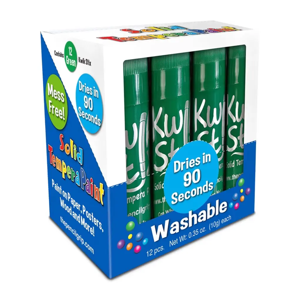 The Pencil Grip-Kwik Stix Tempera Paint. Use these paint sticks to paint on paper, posters and more! Paint dries in ninety seconds and no water is needed. This 11x4-1/4x1 inch package contains twelve tempera paint sticks in assorted colors. Non-toxic. Conforms to ASTM D 4236. Imported.