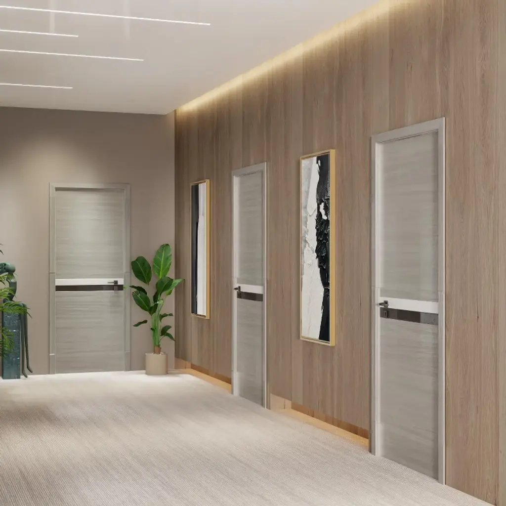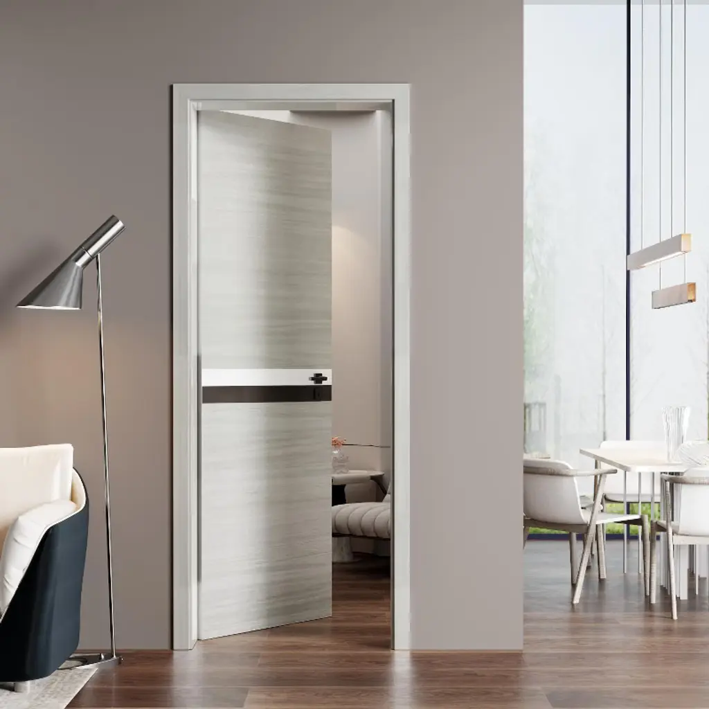 High quality melamine integrated door that does not require additional assembly. The surface has a 2mm thick melamine protective layer, which can be completely waterproof, moisture-proof, scratch resistant, and deformation resistant. The door panel is sturdy and stable, with good sound insulation performance. The appearance is aesthetic and fashionable, suitable for living and office scenarios such as bedrooms, kitchens, corridors, bars, cafes, etc.