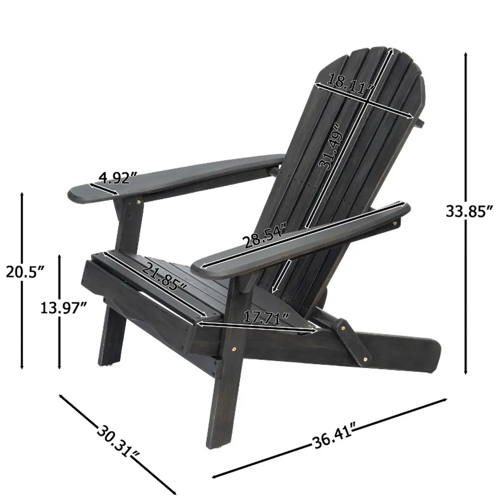 Kwpzqeb Folding Adirondack Chair, Wooden Textured With Armrest, Heavy All-weather, Comfortable Set For Poolside, Backyard, Lawn - Dark Gray