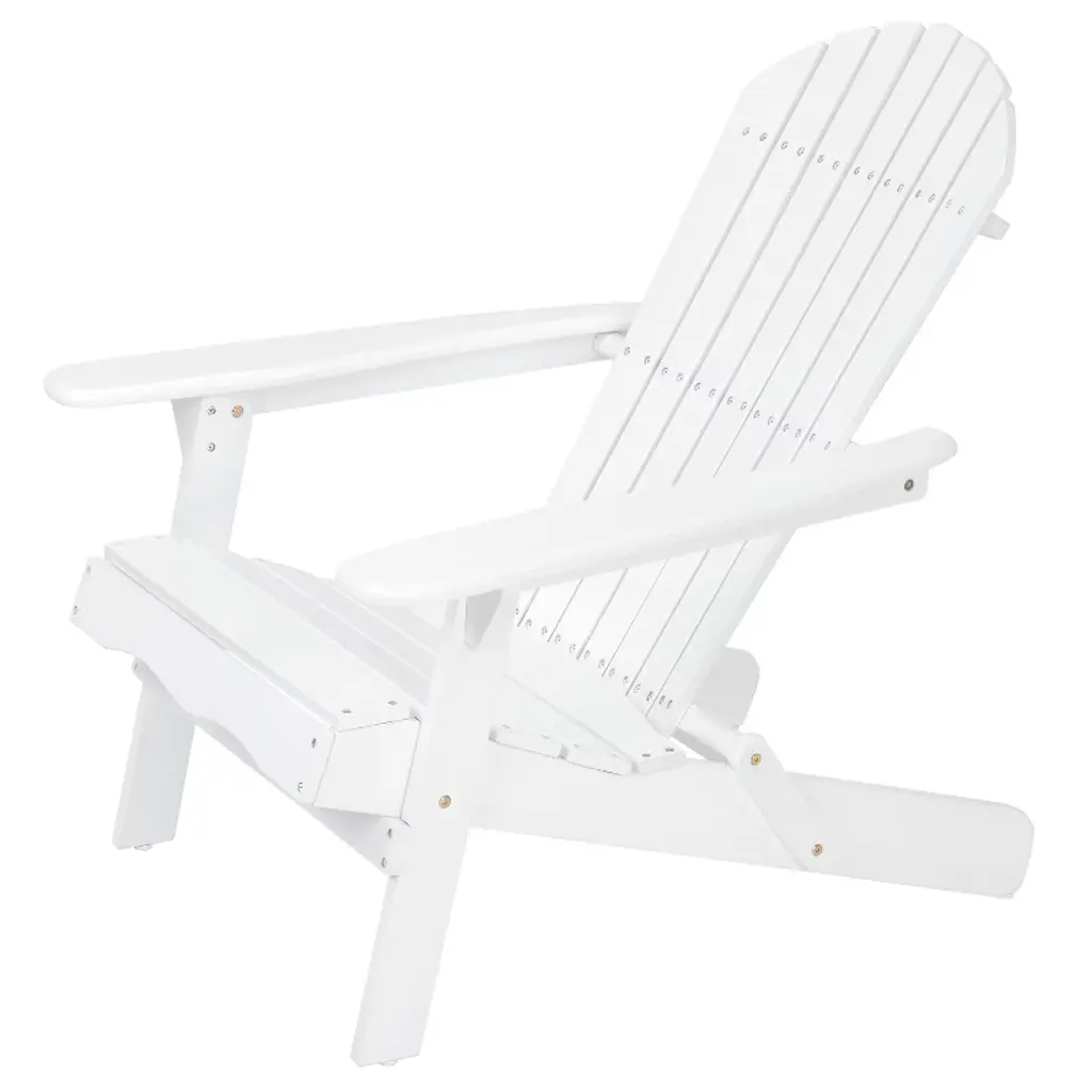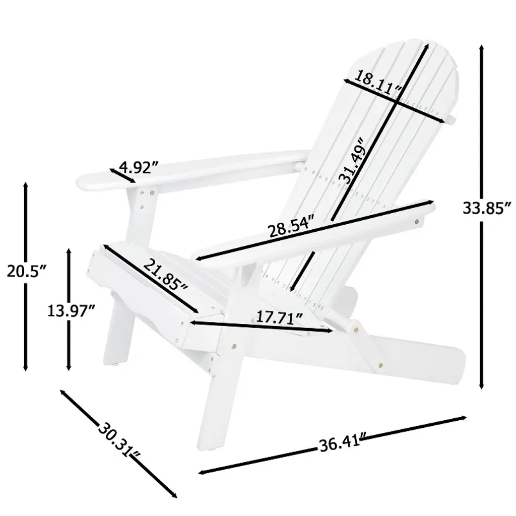 Kwpzqeb Folding Adirondack Chair, Wooden Textured With Armrest, Heavy All-weather, Comfortable Set For Poolside, Backyard, Lawn - White