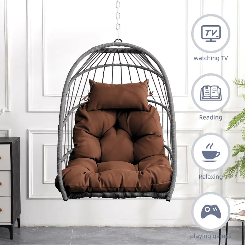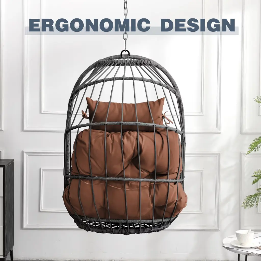 Kwpzqeb Hammock Chair Hanging Rope Swing - Rattan Egg Hanging Swing Chair With Cushions - Max 270 Lbs - For Indoor Or Outdoor, Brown