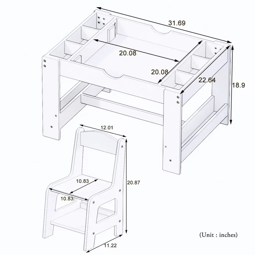 Kwpzqeb Kids 2 In 1 Play Table And 2 Chair Set With 7 Storage Compartments & Built In Plate Compatible, Modern Activity Learning Table Furniture