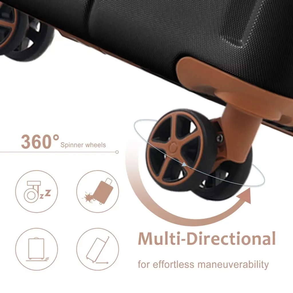 This suitcase features a durable, impact-resistant ABS hardshell shell, yet is lightweight. This sturdy and durable case withstands the rigors of transportation, ensuring the safety of your belongings. Its lightweight design makes travel easy and enjoyable. The upgraded universal wheels provide quiet rolling and easy mobility, allowing you to effortlessly navigate between airport concourses and the streets.