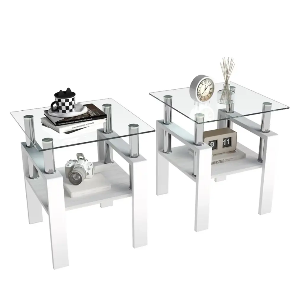 This set of 2 modern side tables cleverly blends stylish metal and tempered glass tops, creating two pieces of minimalist yet practical furniture that will elevate your home's style. Each side table's top is crafted from tempered glass, making it exceptionally strong and shock-resistant. The sturdy glass panels can support up to 155 pounds. Four sturdy metal legs form the stable base of each elegant, compact coffee table¡ªa durable and elegant addition to your home!