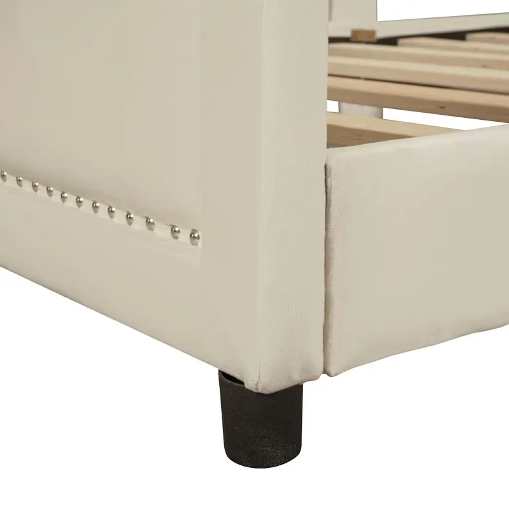 Kwpzqeb Twin Size Upholstered Bed Frame With Guardrails And Headboard, Velvet Daybed For Kids, Solid Wood Slats Support, No Box Spring Needed, Beige