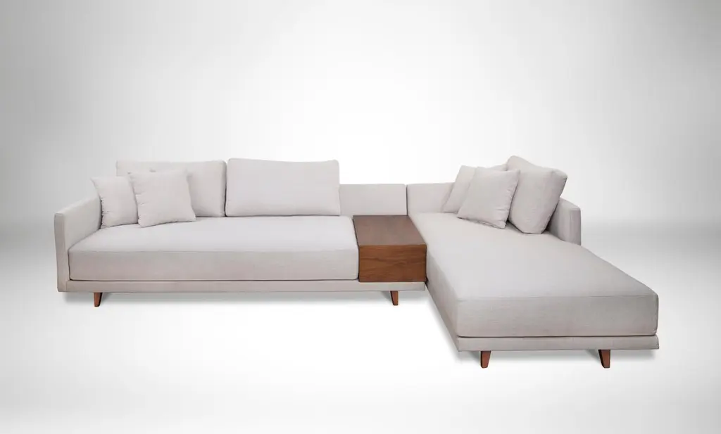 L-Shaped Sofa With Built-In Walnut Side Table With Foam And Fiber Filling