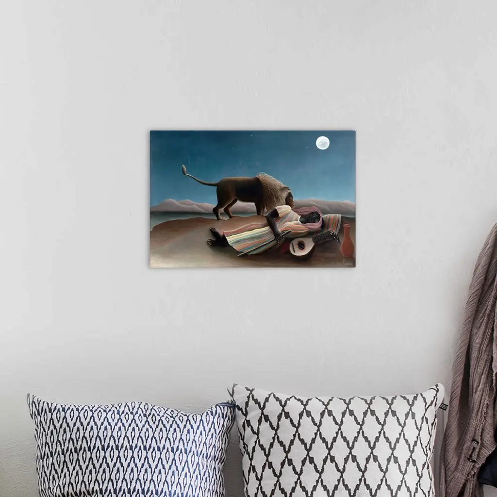 Henri Rousseau (French, 1844-1910), La Boh mienne endormie (The Sleeping Gypsy), 1897. Originally oil on canvas. Museum of Modern Art, New York.