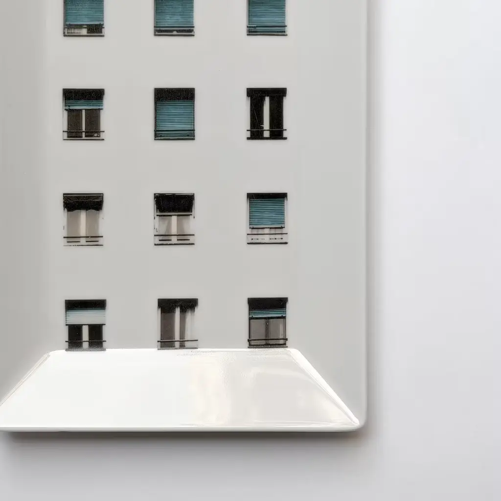 La Finestra sul Cortile is a collection of pocket empties with simple, square shapes on which various building facades are placed. The range of decors is from the endless windows of early skyscrapers to the typical shutters of Italian cities via more decorative and international styles, all designed to create a sense of three-dimensionality. The extremely contemporary and modern decors blend perfectly with these simple forms, giving the environment in which they are placed an artistic touch.