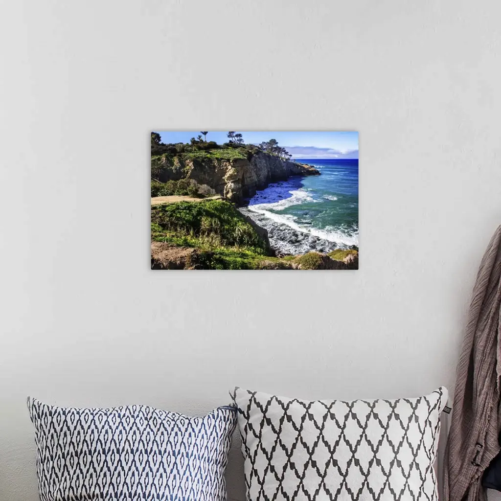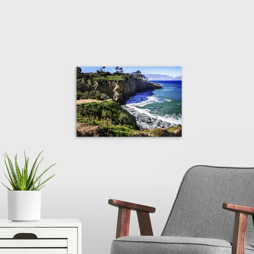 Landscape photograph of the cliffs on the coast line in La Jolla, California.