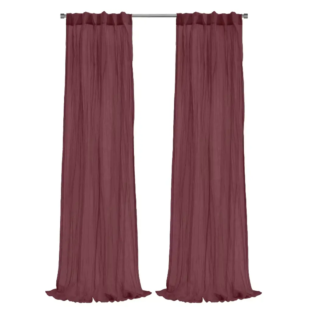 Take function and aesthetics to new heights with the LA Backdrop Drape. Creating the ambiance you have always envisoned to make 1 space become 2, this drape looks stylish while doing it. This backdrop drape serges both bottom and sides for a classy finish. This drape serves as a backdrop or a divider and includes a pack of 2. The panels are designed for the pipe and drape system commonly found in the home and work spaces. The top has a 4" rod pocket. The premium grade spun polyester yarn fabric is soft yet functional. Stain and wrinkle resisitant, it can withstand being cleaned while maintaining its timeless look over 75+ washes. Its simple yet modern hue adds a pop of color to any room. Assembly Required.Color: CranberryMaterials: Polyester PoplinDimensions: W 58" x D 0.1" x H 96" Please note that color in image may slightly alter to the true product color.