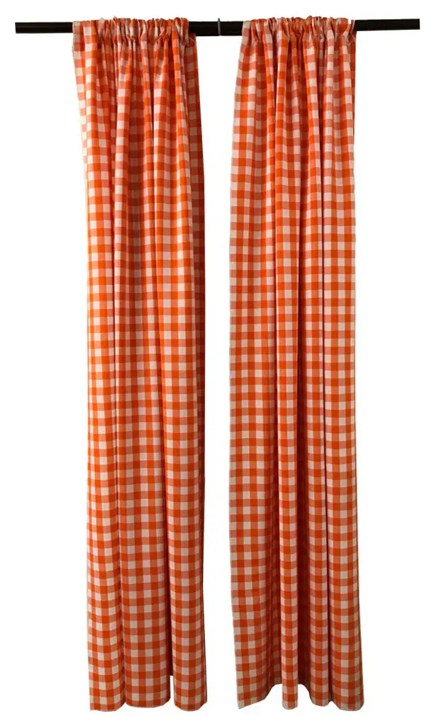 LA Linen Pack 2 Polyester Gingham Checkered Backdrop, 58 by 96-Inch, Red/WhiteOur Checkered Backdrop panel have the bottom and sides serged for a clean look. The top has a 5" rod pocket. The panels are often used with pipe and drape system, found in all hotels, banquets centers and other event locations. The panels can be used as a backdrop or dividers. These drapes are made with premium grade fabric. 100% Spun Polyester yarn in a firm, tightly woven pattern. Stain resistant. Wrinkle Resistant. Lint and snag resistant. Long-lasting fabric will actually soften and improve with repeated washing, and the colors will retain the vibrant colors through years of washing. The color of the panels are indicated in the title and all the sewing lines are with matching color thread. This backdrop would let the light through and is not a blackout.100% Yarn Dyed 1" Checkered polyesterMade in the USALA Linen exclusive gingham checkered pattern is a yarn dyed, 100% spun polyester fabric at 215 GSM. Making this a double sided fabric of highest quality and durabilityThese backdrops can easily be machine washed and will also withstand Professional cleaning detergents5" Rod Pocket on the top. Cover stitch line sewn. Sides and bottom are serged for a clean finished look.Single layer, unlined, decorative backdrop. This backdrop would let the light through and is not a blackout.The digital images we display have the most accurate color possible. However, due to differences in computer monitors, there may be variations in color between the actual product and your screenProduct Dimension (WxDxH) (in.): 58 x 96
