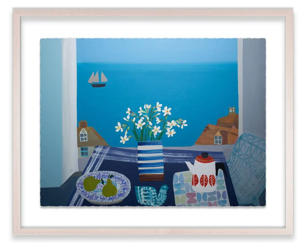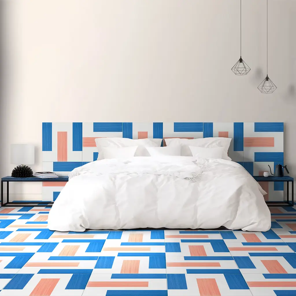 La Scalinata Geometric Motif Coral And Blue Ceramic