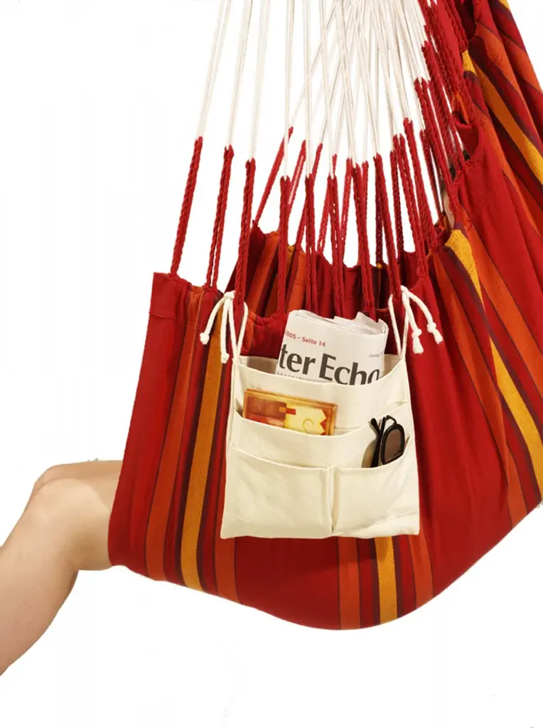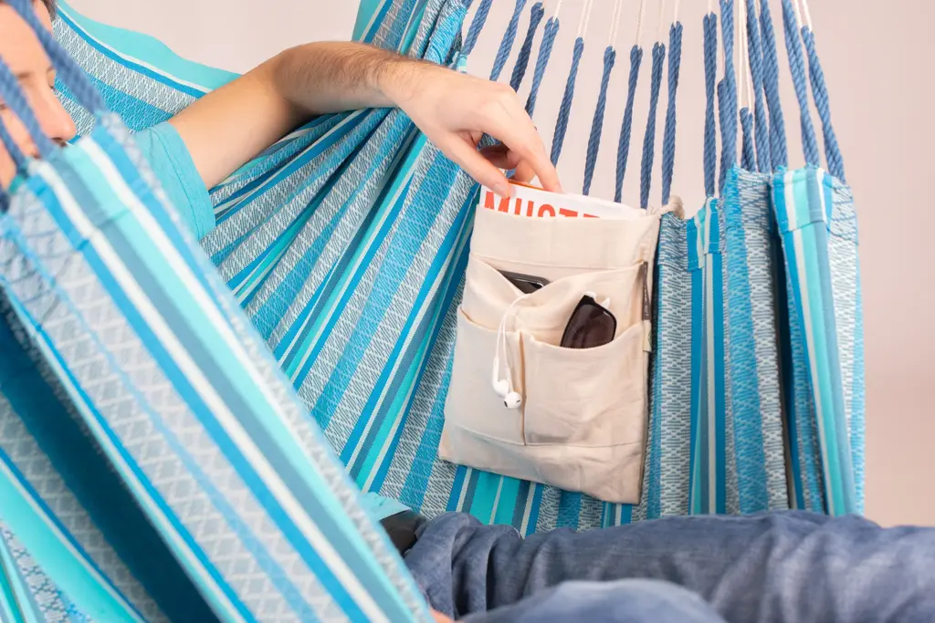 The La Siesta utility pocket is perfect for storing your glasses, cell phone, or favorite book. It cleverly attaches to the hammock or hammock chair.