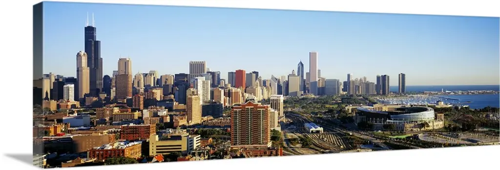 Photograph of the downtown Los Angeles skyline with Dodger Stadium on the left.