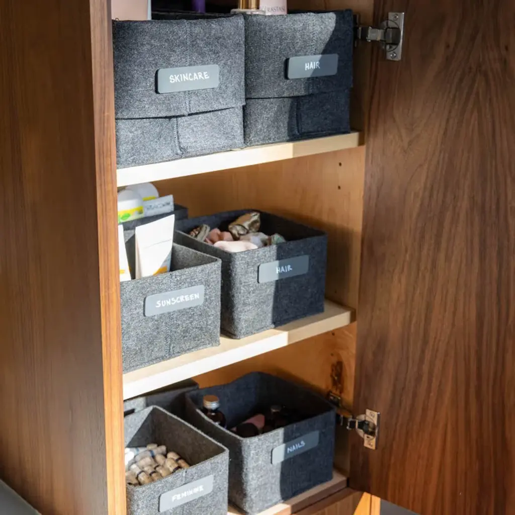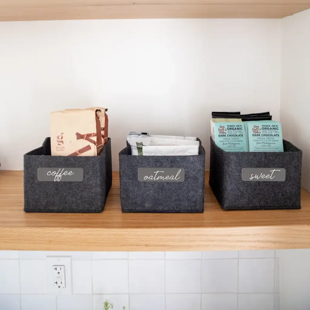 Labels are incredibly valuable to an organized home, allowing you to know exactly what's in each bin within the space. These Labels are attached with double pins through the bin material and can be used with our flex and handle bins as well as other bins made of fabric that can be pierced! We suggest writing on these labels with wet-erase or waterproof chalk pens. Please note that the pin backings can be choking hazards and the pins themselves are sharp. Caution should be used around these items and they are not suitable for children.