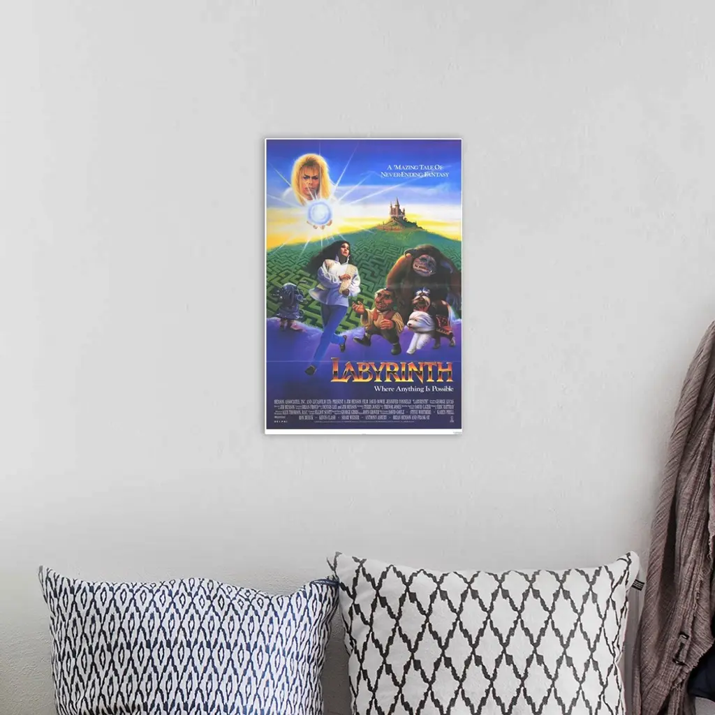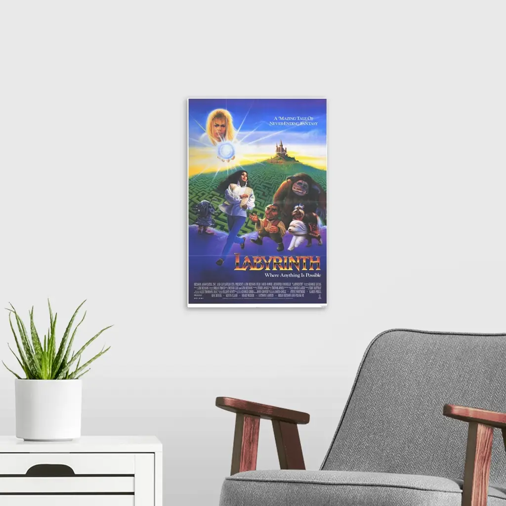 While baby-sitting her baby brother Froud, Connelly is so frustrated she asks the goblins to take him away. When the Goblin King, played by Bowie, comes to answer her idle wish, she must try to rescue Froud by solving the fantastic labyrinth. If she does not find him in time, Froud will become one of the goblins forever. During her journey, Connelly is befriended by all sorts of odd creatures created by Henson, and she grows up a little along the way. A fascinating adventure movie for the whole family.