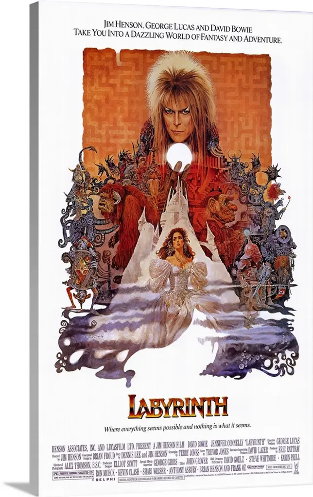 While baby-sitting her baby brother Froud, Connelly is so frustrated she asks the goblins to take him away. When the Goblin King, played by Bowie, comes to answer her idle wish, she must try to rescue Froud by solving the fantastic labyrinth. If she does not find him in time, Froud will become one of the goblins forever. During her journey, Connelly is befriended by all sorts of odd creatures created by Henson, and she grows up a little along the way. A fascinating adventure movie for the whole family.