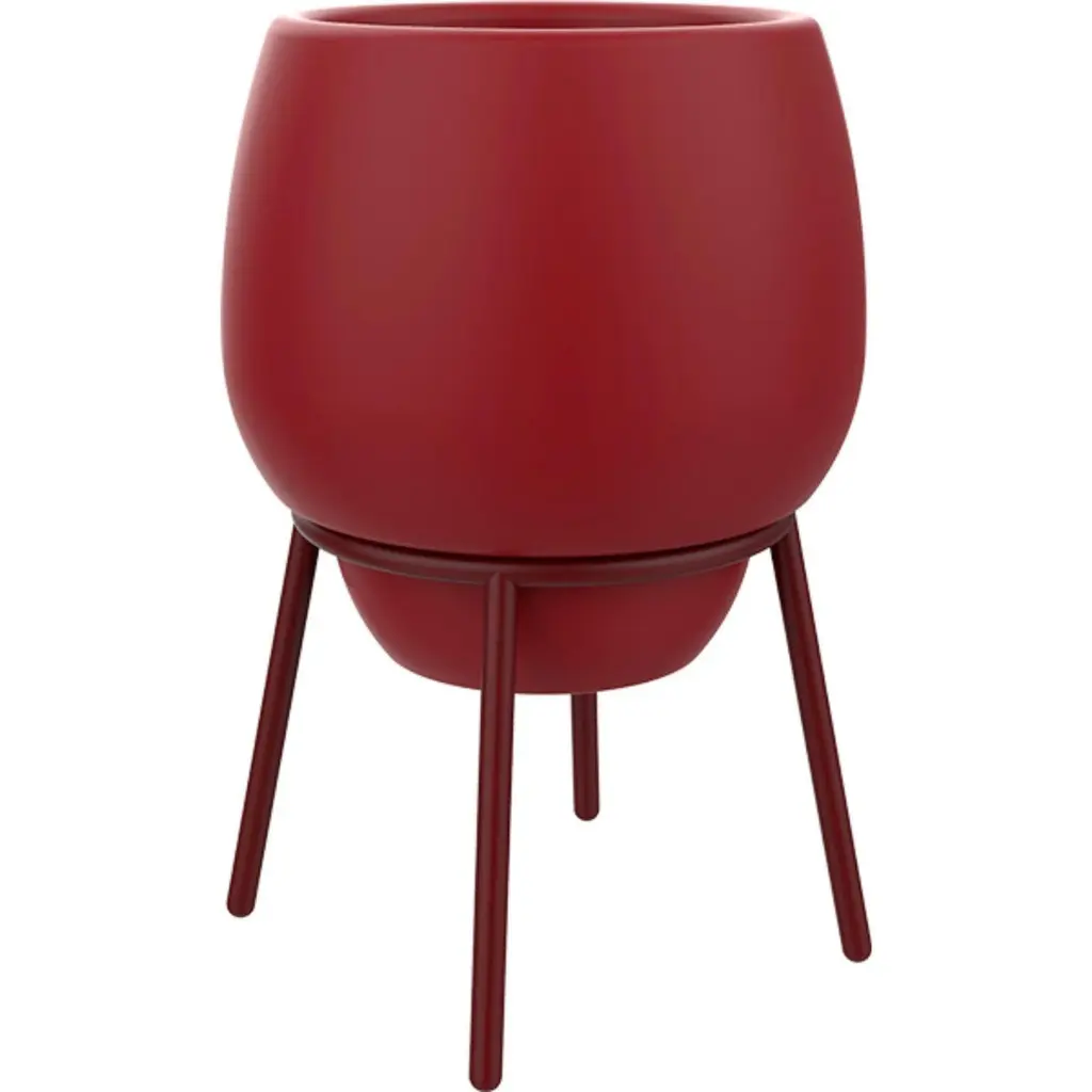 Lace Burgundy 50 low pot by MoweeDimensions: Ø 55 x H 76 cm.Material: Polyethylene and stainless steel.Weight: 6 kg.Also available in different colors and finishes (Lacquered or retroilluminated).Lace is a collection of furniture made by rotomoulding. Its shape resembles a swollen body that looks tightened by a loop and deforms to create a double volume. The distinguishing feature of the collection is the reduction of plastic volumes by incorporating metal structures into the design that lighten the visual weight of the pieces.Möwee is part of the work, effort and commitment of Gaviota, a leading company in the outdoor sector. It was set up as an independent venture to broaden horizons in the outdoor furniture world, with its own distinctive character and way of doing things. Freshness, simplicity, quality and design are at the heart of its DNA.