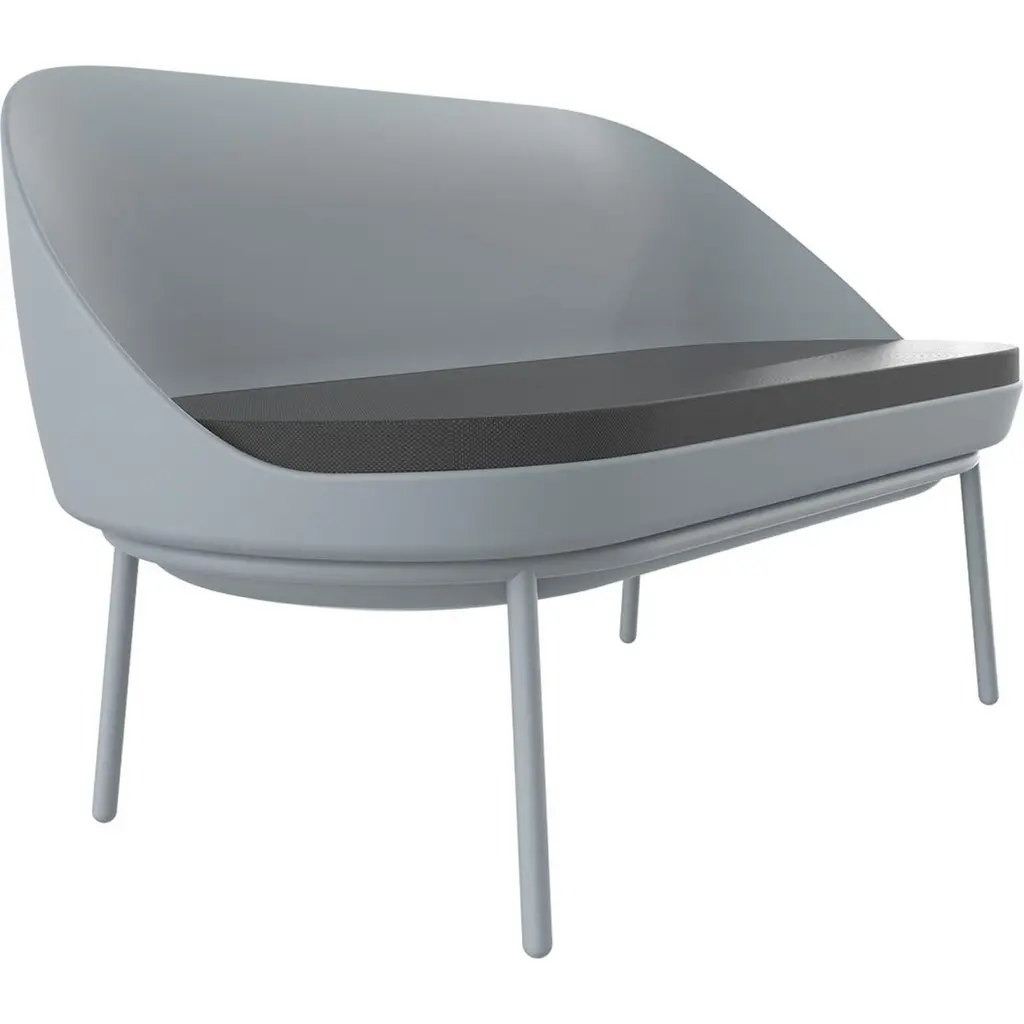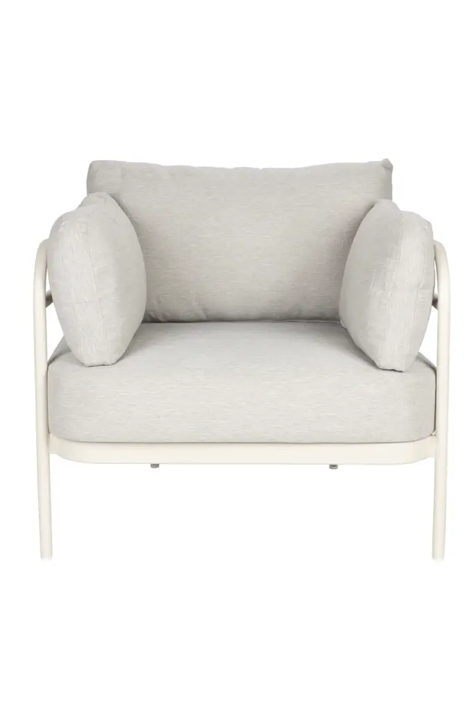 Lace cream sofa with cushion by Mowee.Dimensions: D66 x W135 x H75.5 cmMaterial: Polyethylene, Stainless SteelWeight: 21 kgAlso Available in different colours and finishes.Lace is a collection of furniture made by rotomoulding. Its shape resembles a swollen body that looks tightened by a loop and deforms to create a double volume. The distinguishing feature of the collection is the reduction of plastic volumes by incorporating metal structures into the design that lighten the visual weight of the pieces.Möwee is part of the work, effort and commitment of Gaviota, a leading company in the outdoor sector. It was set up as an independent venture to broaden horizons in the outdoor furniture world, with its own distinctive character and way of doing things. Freshness, simplicity, quality and design are at the heart of its DNA.