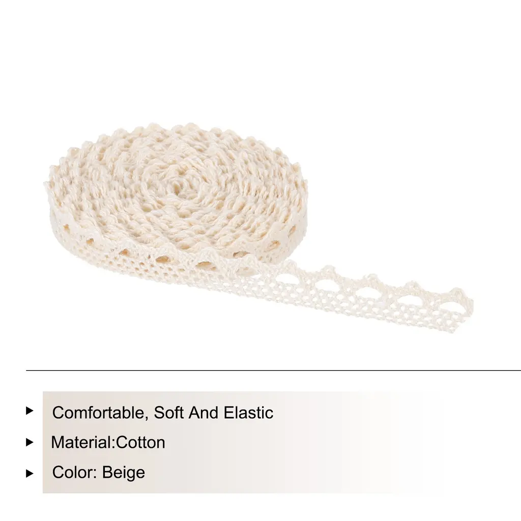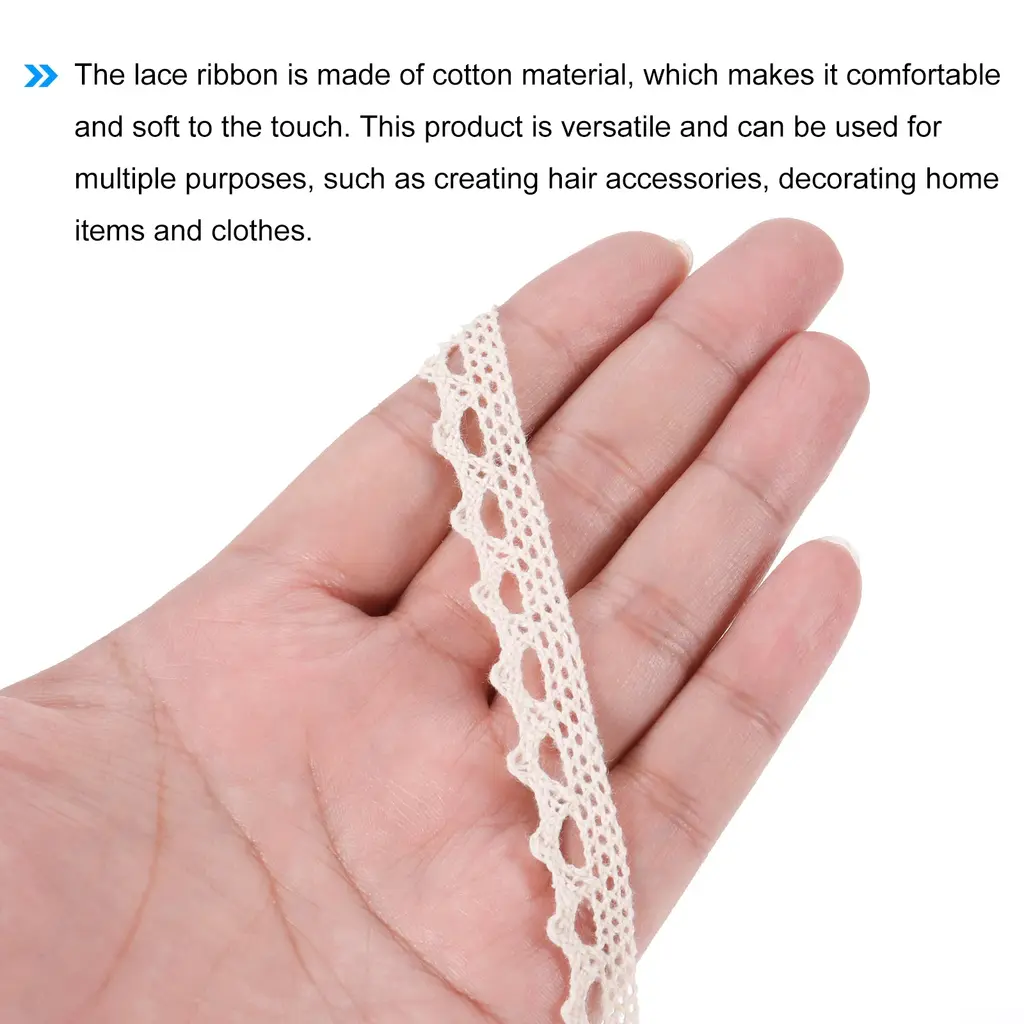 What is this?This lace ribbon has a total length of 10 yards and a width of 0.39 inch, making it suitable for various DIY projects such as gift wrapping, headbands crafting, wedding decorations, and more.What will I get?Lace ribbon x 1;Material:cotton;Length: 10 yards;Width: 0.39 inchColor: Beige;Are there any advantages of the product?The lace ribbon is made of cotton material, which makes it comfortable and soft to the touch. It also has elasticity, allowing it to stretch easily for easy application in different objects and surfaces. This product is versatile and can be used for multiple purposes, such as creating hair accessories, decorating home items and clothes.How to use it?You can cut the ribbon to the desired length using scissors and add any embellishment you like, such as beads or pearls. The elastic material allows you to wrap it around any object tightly to create a seamless and decorative look.What should I notice?Handle the ribbon carefully to prevent it from tearing. It is recommended to store the ribbon in a dry and cool place to ensure its quality and longevity.