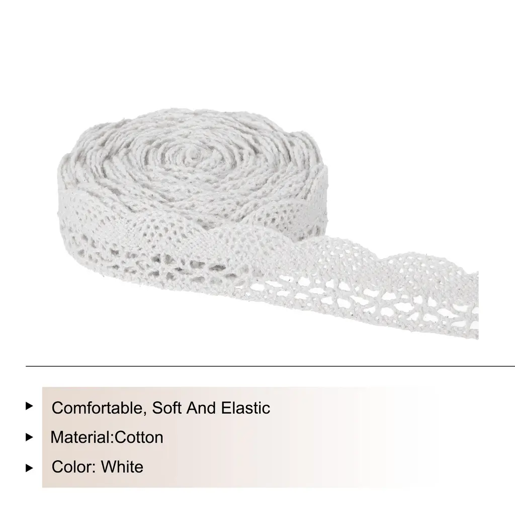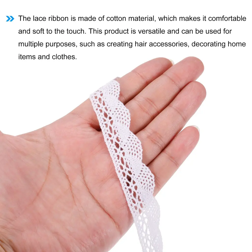 What is this?This lace ribbon has a total length of 10 yards and a width of 0.79 inch, making it suitable for various DIY projects such as gift wrapping, headbands crafting, wedding decorations, and more.What will I get?Lace ribbon x 1;Material:cotton;Length: 10 yards;Width: 0.79 inchColor: White;Are there any advantages of the product?The lace ribbon is made of cotton material, which makes it comfortable and soft to the touch. It also has elasticity, allowing it to stretch easily for easy application in different objects and surfaces. This product is versatile and can be used for multiple purposes, such as creating hair accessories, decorating home items and clothes.How to use it?You can cut the ribbon to the desired length using scissors and add any embellishment you like, such as beads or pearls. The elastic material allows you to wrap it around any object tightly to create a seamless and decorative look.What should I notice?Handle the ribbon carefully to prevent it from tearing. It is recommended to store the ribbon in a dry and cool place to ensure its quality and longevity.