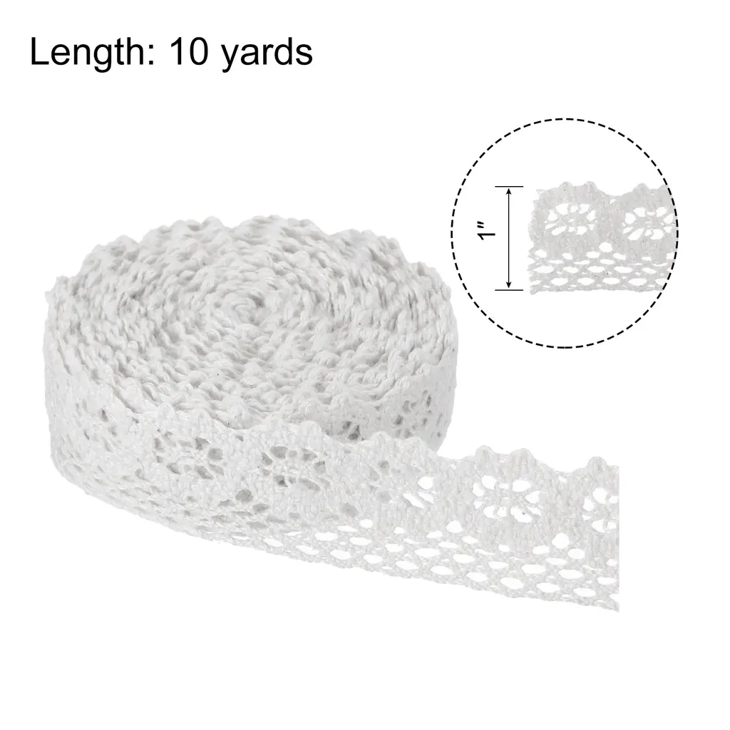 What is this?This lace ribbon has a total length of 10 yards and a width of 1.2 inch, making it suitable for various DIY projects such as gift wrapping, headbands crafting, wedding decorations, and more.What will I get?Lace ribbon x 1;Material:cotton;Length: 10 yards;Width: 1.2 inchColor: White;Are there any advantages of the product?The lace ribbon is made of cotton material, which makes it comfortable and soft to the touch. It also has elasticity, allowing it to stretch easily for easy application in different objects and surfaces. This product is versatile and can be used for multiple purposes, such as creating hair accessories, decorating home items and clothes.How to use it?You can cut the ribbon to the desired length using scissors and add any embellishment you like, such as beads or pearls. The elastic material allows you to wrap it around any object tightly to create a seamless and decorative look.What should I notice?Handle the ribbon carefully to prevent it from tearing. It is recommended to store the ribbon in a dry and cool place to ensure its quality and longevity.
