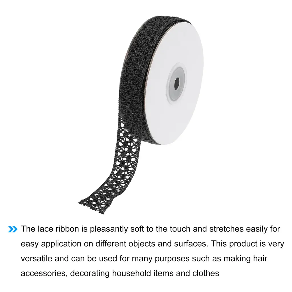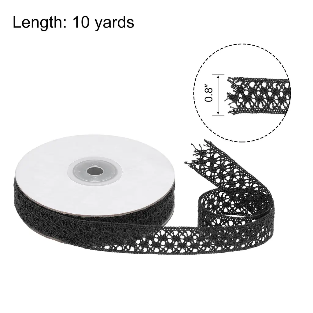 This Lace Ribbon is perfect for adding a touch of elegance to any DIY project. Made with soft and comfortable cotton, it stretches easily and can be used for various purposes such as gift wrapping, headbands, wedding decorations, and more. With a length of 10 yards and a width of 0.8 inch, this black lace ribbon is versatile and can be cut to the desired length for seamless application. Add your own embellishments like beads or pearls to create a unique and decorative look. Carefully handle the ribbon to prevent tearing and store it in a dry and cool place for long-lasting quality.Features:Additional Information: