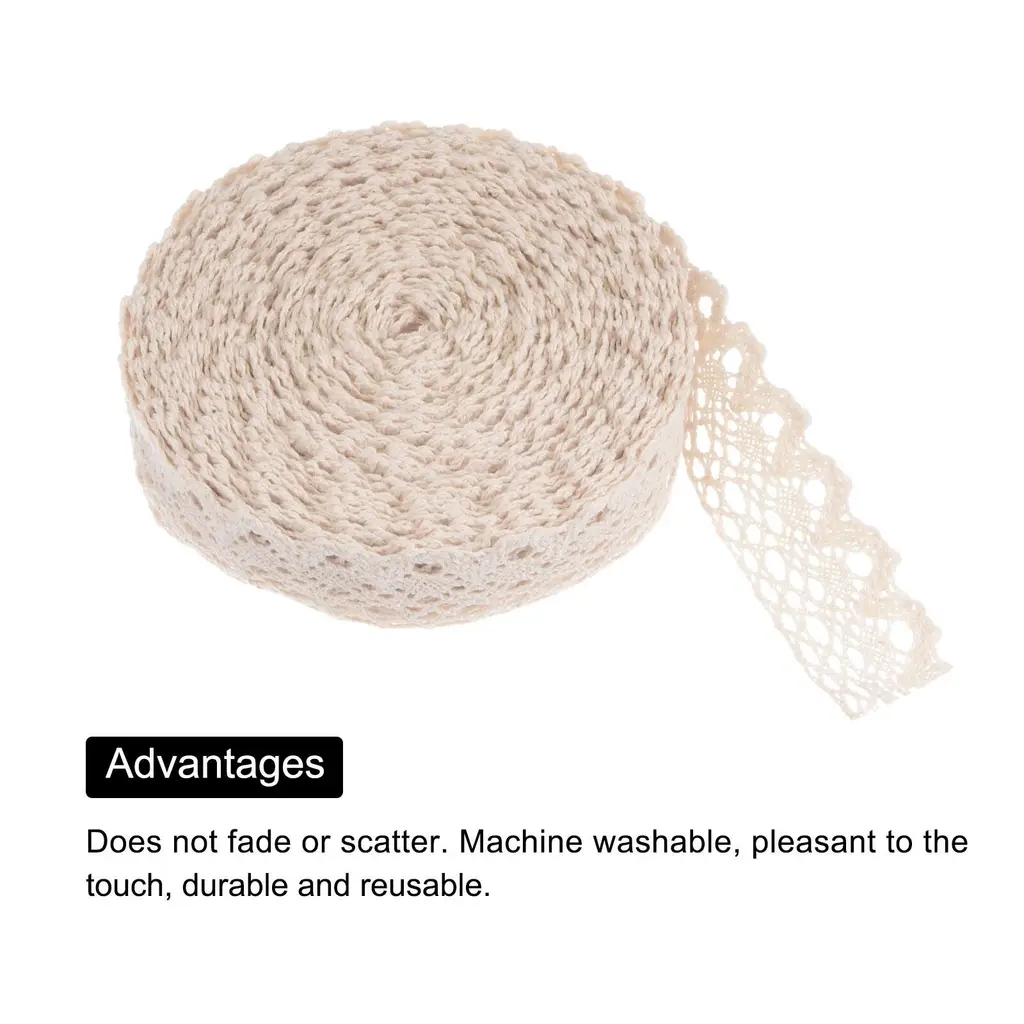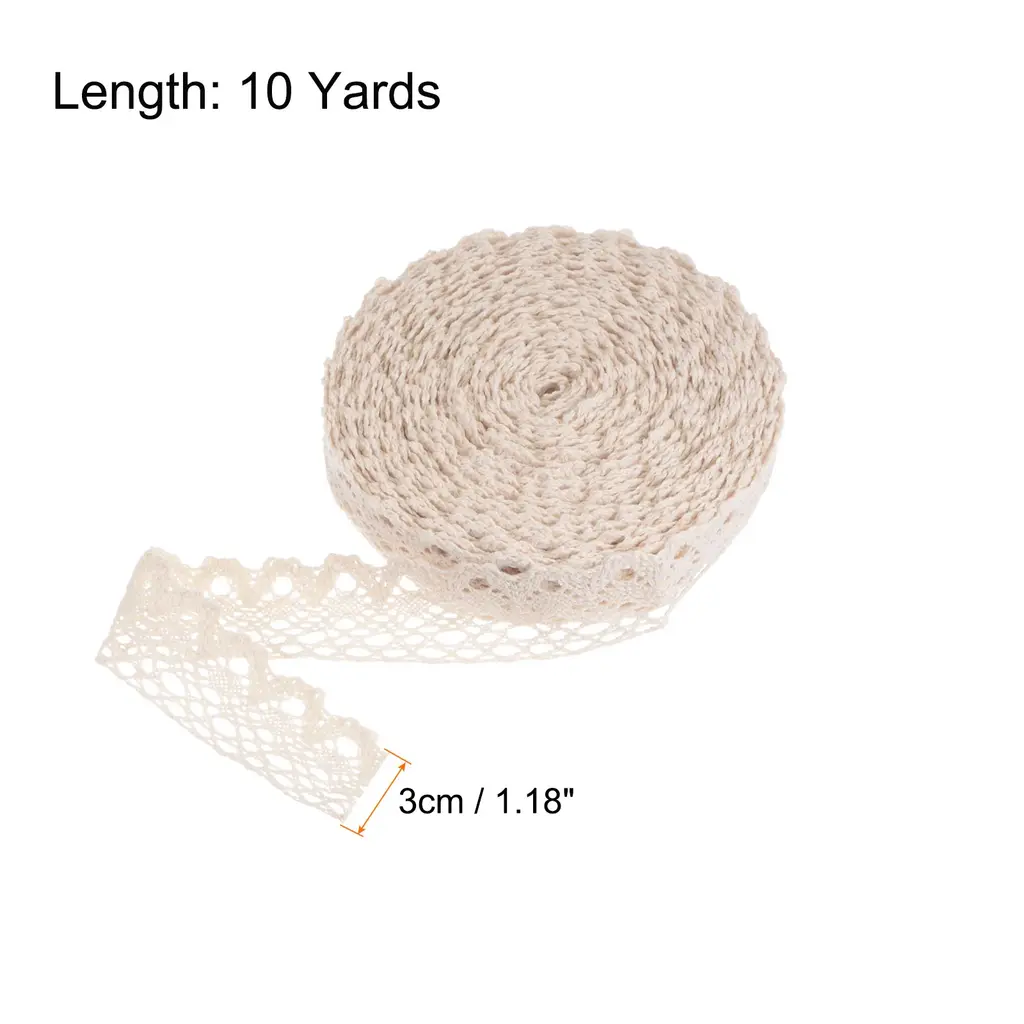 What is this?Hollow lace ribbon is made of cotton material with exquisite patterns, suitable for wedding, birthday, festival, event, gift packaging and decoration, clothes, curtains, sofas, bed sheets, tablecloths, etc. DIY ScrapbookingWhat will I get?Width:3 cm(1.18 inches); Length:10 Yards; Color : Beige ;Weight: 60g In the package of:1 x Lace RibbonIs there any advantages of the product?The product is a cotton ribbon with a hollow design, which does not fade or scatter. It can be washed by machine, comfortable to the touch, durable and can be reusedHow to use it?Cut to the length you need, and then sew it to the fabric of the clothes, or directly use it for packaging decoration, easy to useWhat should I notice?Please pay attention to the size information of the product before purchasing, if you have any questions, please contact us, we will do our best to serve you
