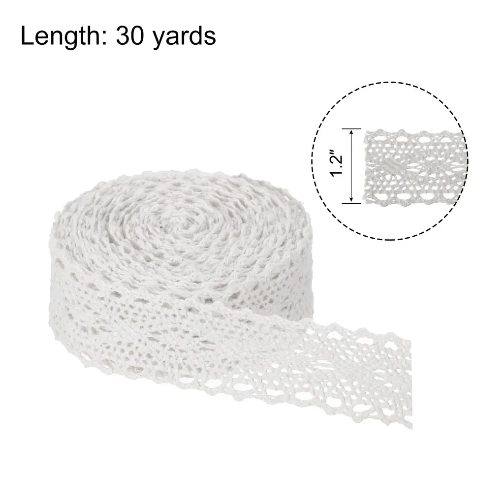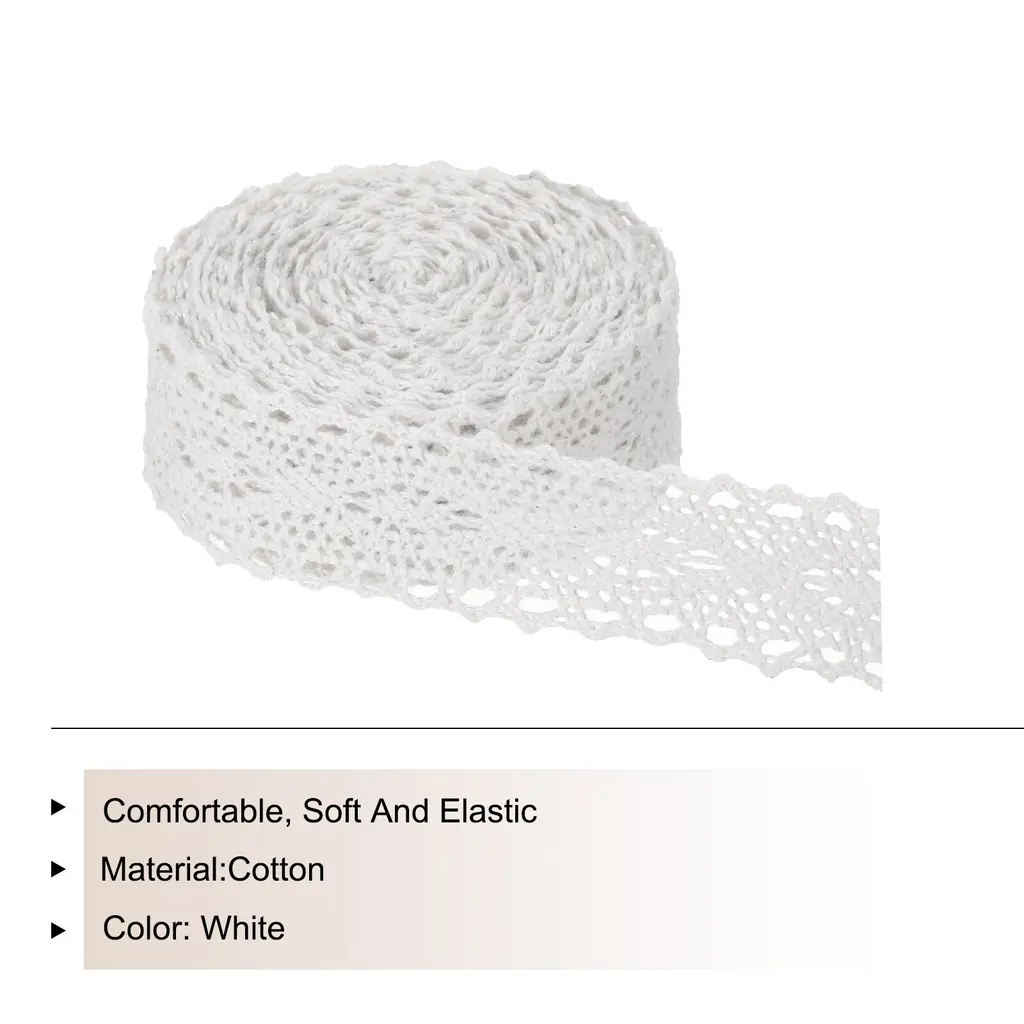 What is this?This lace ribbon has a total length of 10 yards and a width of 1.2 inch, making it suitable for various DIY projects such as gift wrapping, headbands crafting, wedding decorations, and more.What will I get?Lace ribbon x 1;Material:cotton;Length: 10 yards;Width: 1.2 inchColor: White;Are there any advantages of the product?The lace ribbon is made of cotton material, which makes it comfortable and soft to the touch. It also has elasticity, allowing it to stretch easily for easy application in different objects and surfaces. This product is versatile and can be used for multiple purposes, such as creating hair accessories, decorating home items and clothes.How to use it?You can cut the ribbon to the desired length using scissors and add any embellishment you like, such as beads or pearls. The elastic material allows you to wrap it around any object tightly to create a seamless and decorative look.What should I notice?Handle the ribbon carefully to prevent it from tearing. It is recommended to store the ribbon in a dry and cool place to ensure its quality and longevity.