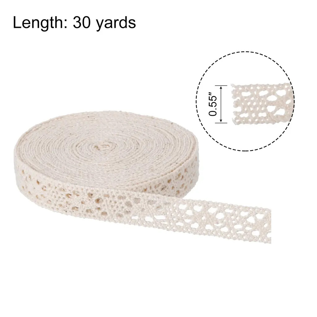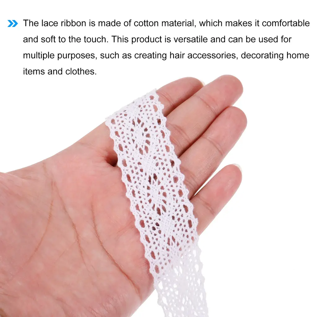 What is this?This lace ribbon has a total length of 10 yards and a width of 1.2 inch, making it suitable for various DIY projects such as gift wrapping, headbands crafting, wedding decorations, and more.What will I get?Lace ribbon x 1;Material:cotton;Length: 10 yards;Width: 1.2 inchColor: White;Are there any advantages of the product?The lace ribbon is made of cotton material, which makes it comfortable and soft to the touch. It also has elasticity, allowing it to stretch easily for easy application in different objects and surfaces. This product is versatile and can be used for multiple purposes, such as creating hair accessories, decorating home items and clothes.How to use it?You can cut the ribbon to the desired length using scissors and add any embellishment you like, such as beads or pearls. The elastic material allows you to wrap it around any object tightly to create a seamless and decorative look.What should I notice?Handle the ribbon carefully to prevent it from tearing. It is recommended to store the ribbon in a dry and cool place to ensure its quality and longevity.