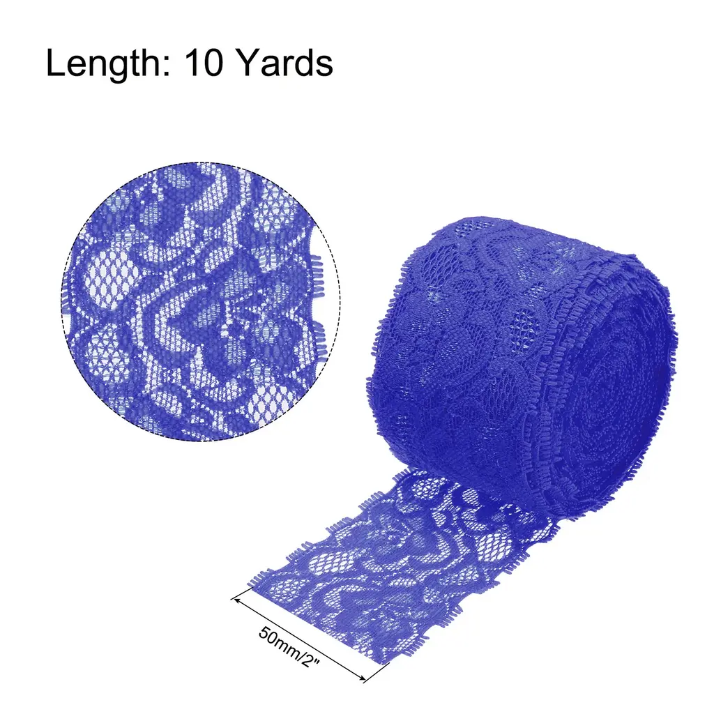 What is this?This lace ribbon is suitable for various DIY projects such as gift wrapping, headbands crafting, wedding decorations, and more.What will I get?Lace ribbon x 1; Material:fabric; Length: 10 Yards; Width: 2 Inch; Color: Sea Blue;Are there any advantages of the product?The lace ribbon is comfortable and soft to the touch,made from elastic material ,the lace trim allowing it to stretch easily for easy application in different objects and surfaces. This product is versatile and can be used for multiple purposes, such as creating hair accessories, decorating home items and clothes.How to use it?You can cut the ribbon to the desired length using scissors and add any embellishment you like, such as beads or pearls. The elastic material allows you to wrap it around any object tightly to create a seamless and decorative look.What should I notice?Handle the ribbon carefully to prevent it from tearing. It is recommended to store the ribbon in a dry and cool place to ensure its quality and longevity.