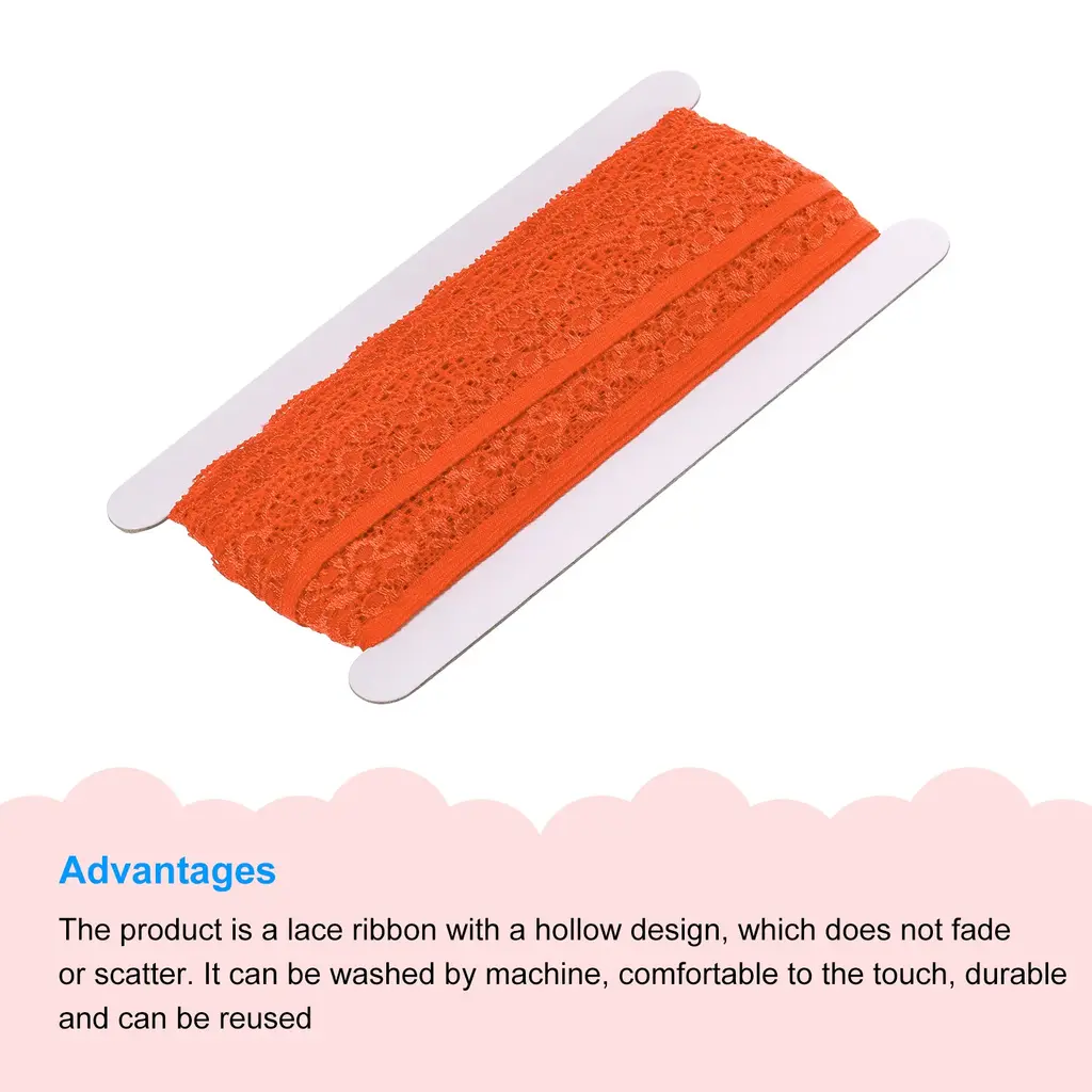 What is this?Hollow lace ribbon is made of lace material with exquisite patterns, suitable for wedding, birthday, festival, event, gift packaging and decoration, clothes, curtains, sofas, bed sheets, tablecloths, etc. DIY ScrapbookingWhat will I get?Width:2.5 cm(0.98 inches); Length:10 Yards; Color : orange;Weight: 46.3g;In the package of:1 x Lace RibbonIs there any advantages of the product?The product is a lace ribbon with a hollow design, which does not fade or scatter. It can be washed by machine, comfortable to the touch, durable and can be reusedHow to use it?Cut to the length you need, and then sew it to the fabric of the clothes, or directly use it for packaging decoration, easy to useWhat should I notice?Please pay attention to the size information of the product before purchasing, if you have any questions, please contact us, we will do our best to serve you