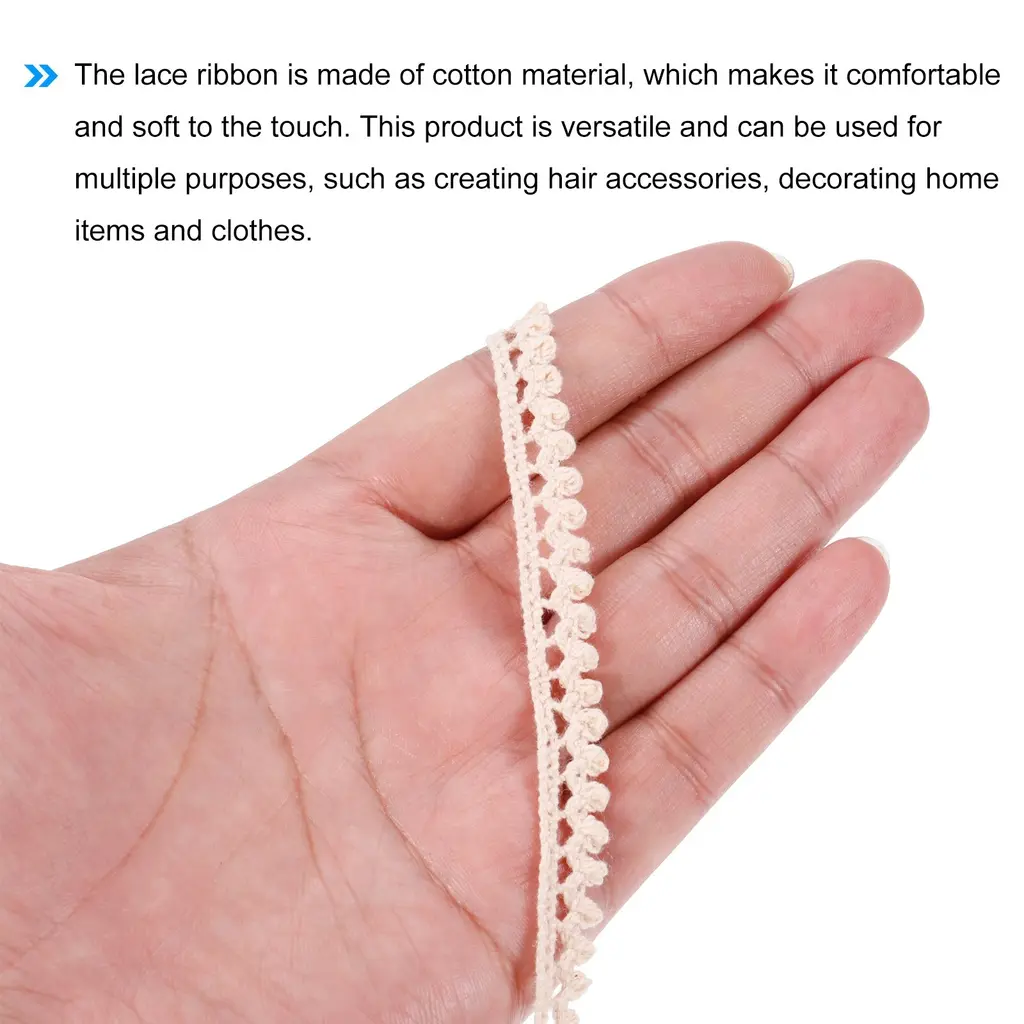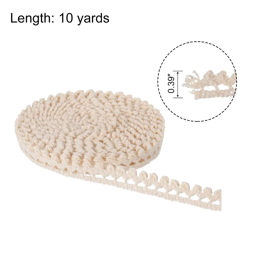 Enhance your DIY projects with this versatile Lace Trim Ribbon. Made of soft and comfortable cotton, this 0.39 inch wide ribbon is perfect for various crafts like gift wrapping, headband crafting, wedding decorations, and more. With a generous length of 10 yards, you'll have plenty to work with. Add a touch of elegance to your creations with this beige lace ribbon.Features: