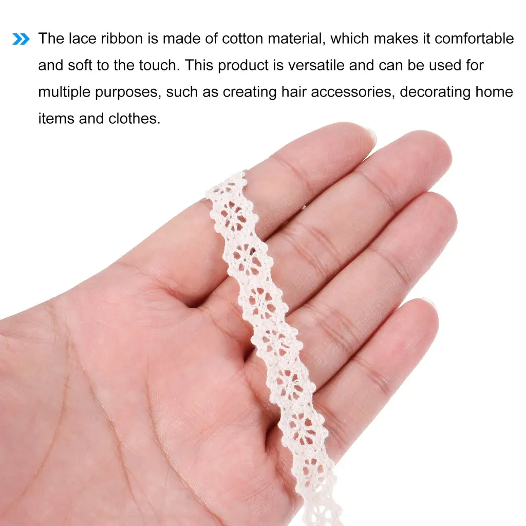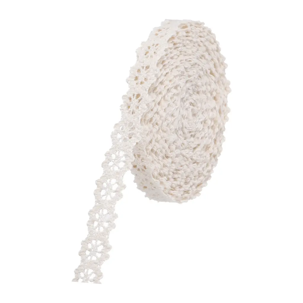 What is this?This lace ribbon has a total length of 10 yards and a width of 0.47 inch, making it suitable for various DIY projects such as gift wrapping, headbands crafting, wedding decorations, and more.What will I get?Lace ribbon x 1;Material:cotton;Length: 10 yards;Width: 0.47 inchColor: Beige;Are there any advantages of the product?The lace ribbon is made of cotton material, which makes it comfortable and soft to the touch. It also has elasticity, allowing it to stretch easily for easy application in different objects and surfaces. This product is versatile and can be used for multiple purposes, such as creating hair accessories, decorating home items and clothes.How to use it?You can cut the ribbon to the desired length using scissors and add any embellishment you like, such as beads or pearls. The elastic material allows you to wrap it around any object tightly to create a seamless and decorative look.What should I notice?Handle the ribbon carefully to prevent it from tearing. It is recommended to store the ribbon in a dry and cool place to ensure its quality and longevity.