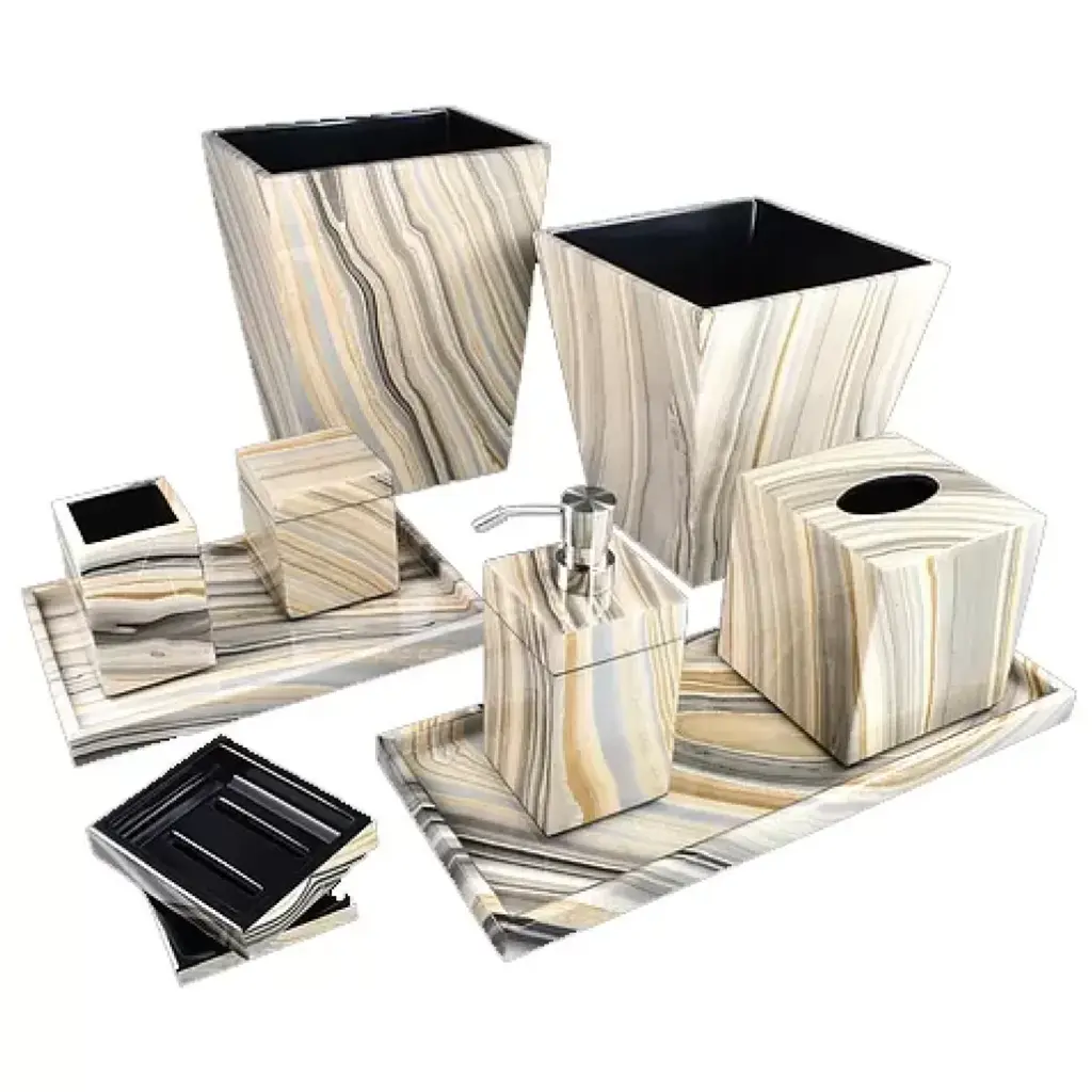 These handcrafted lacquered wood products are produced by hand pouring several layers of lacquer onto wood frames, individual hand polishing each layer, and finishing with a deep, rich finish. Each item requires eleven steps and a minimum of fourteen days to be completed.