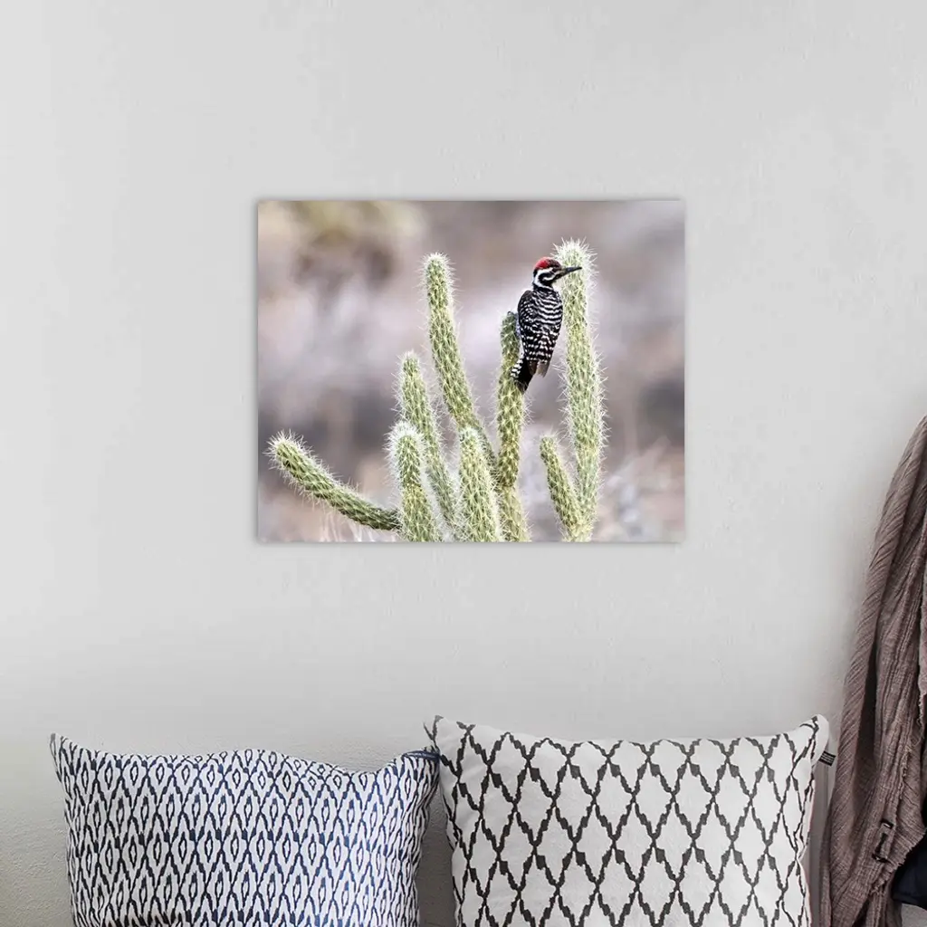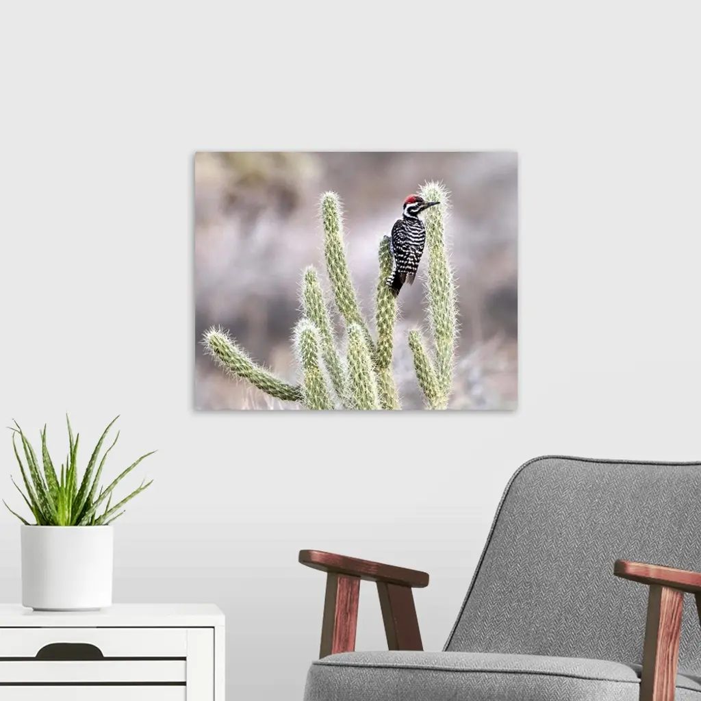 Ladder Backed Woodpecker Resting On Gander's Cholla, California.