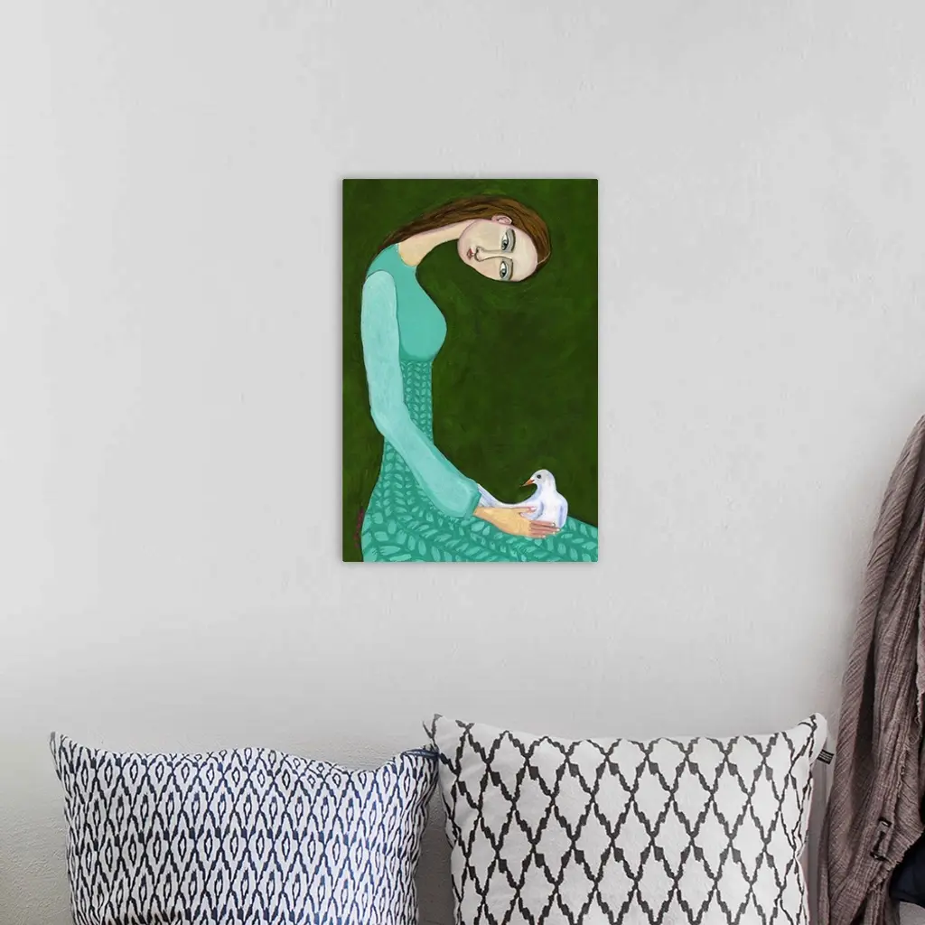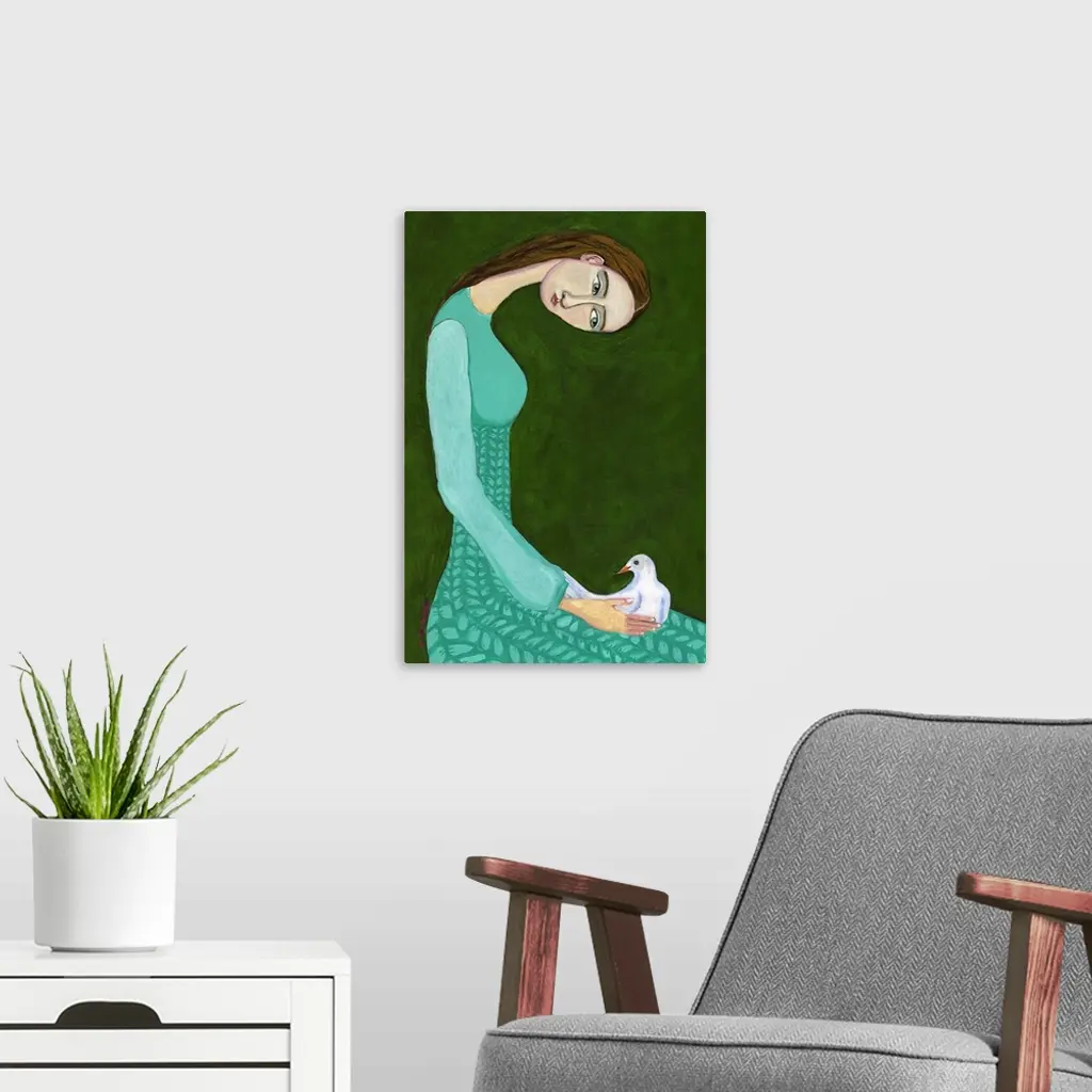 Lady Sitting With White Dove wall art for home and office decor. Discover canvas art prints, photos, mural, big canvas art and framed wall art in GreatBigCanvas.com's varied collections.