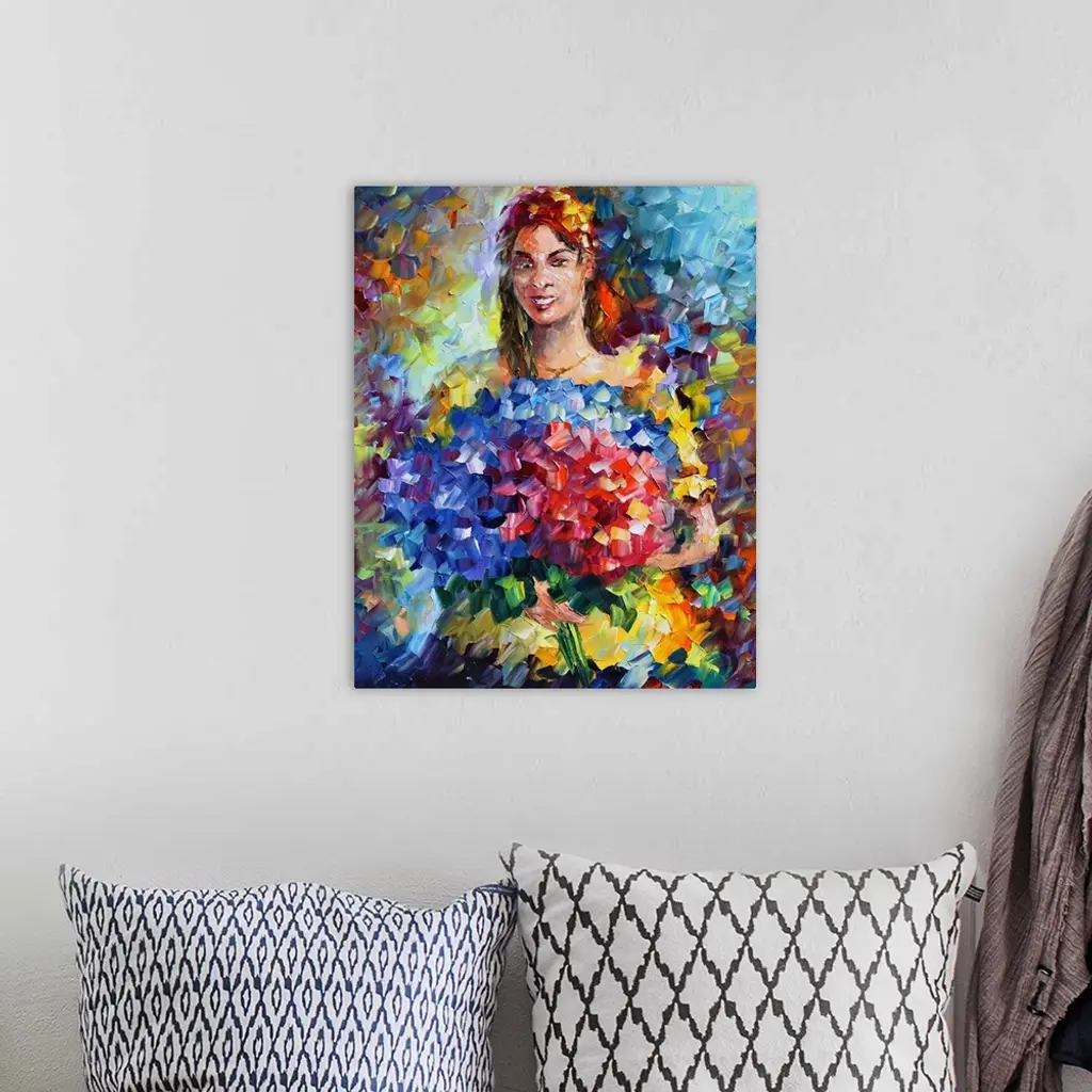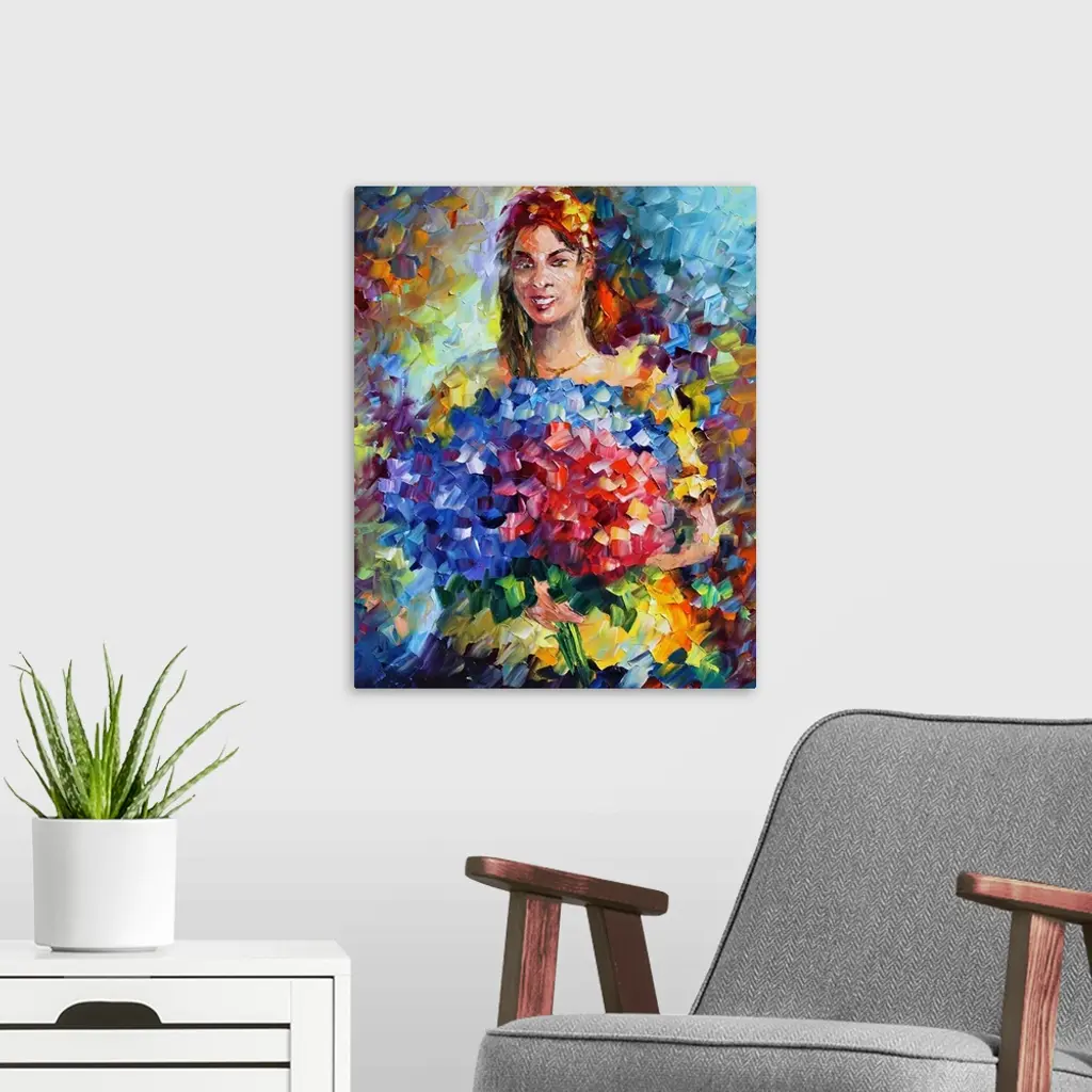 Lady with flowers wall art for home and office decor. Discover canvas art prints, photos, mural, big canvas art and framed wall art in GreatBigCanvas.com's varied collections.