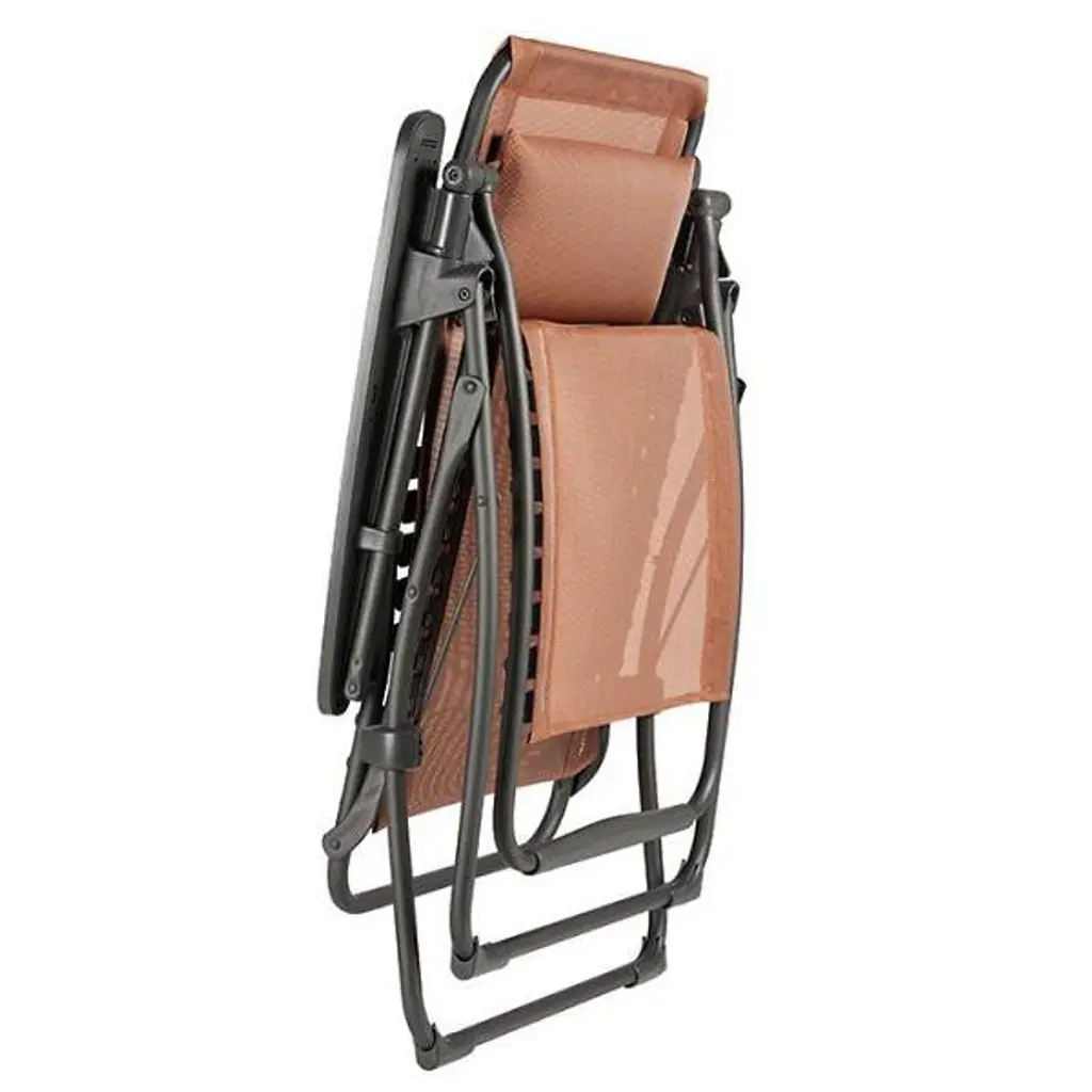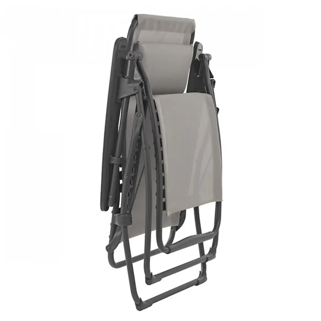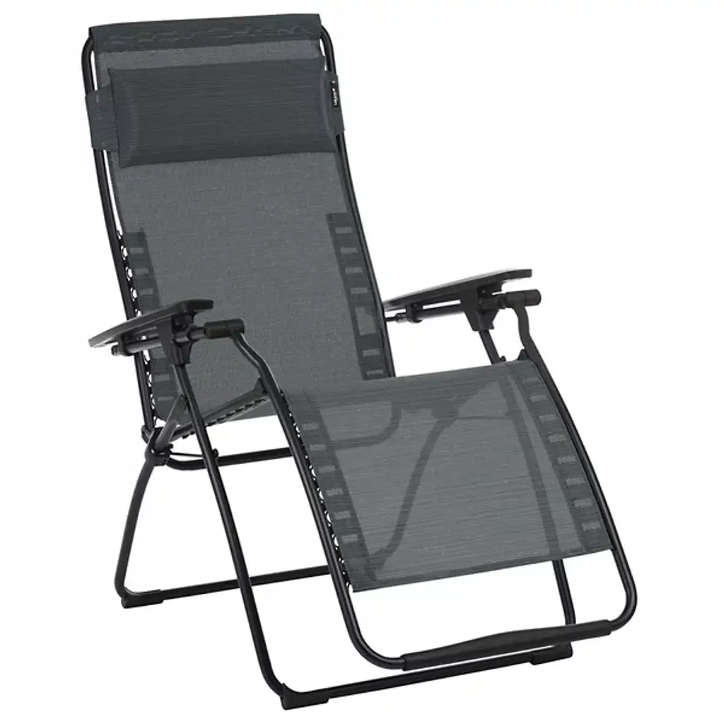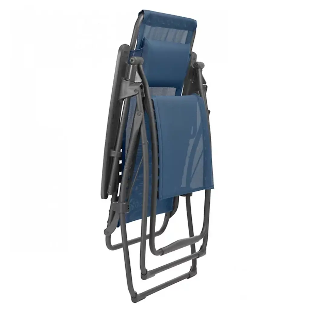 The Lafuma Futura Batyline Zero Gravity Recliner from Lafuma is the definition of comfort. Adjustable to several positions, this chair allows for sitting straight up or completely flat, and also contains several extra features such as a movable headrest and a footrest. The Batyline fabric is practical and stylish, designed particularly for outdoor uses as it resists wear and tear and UV exposure. Ensured to last for years to come, this recliner will be a central point in family gatherings, parties with friends, and camping trips.