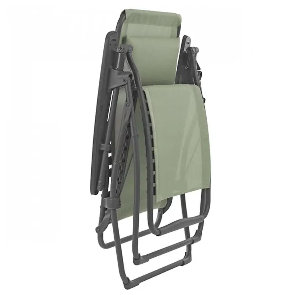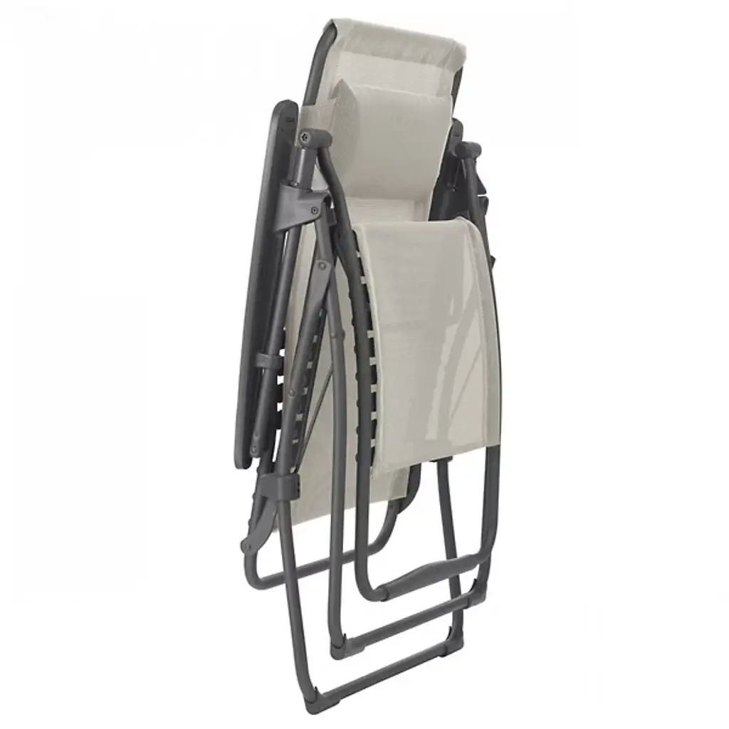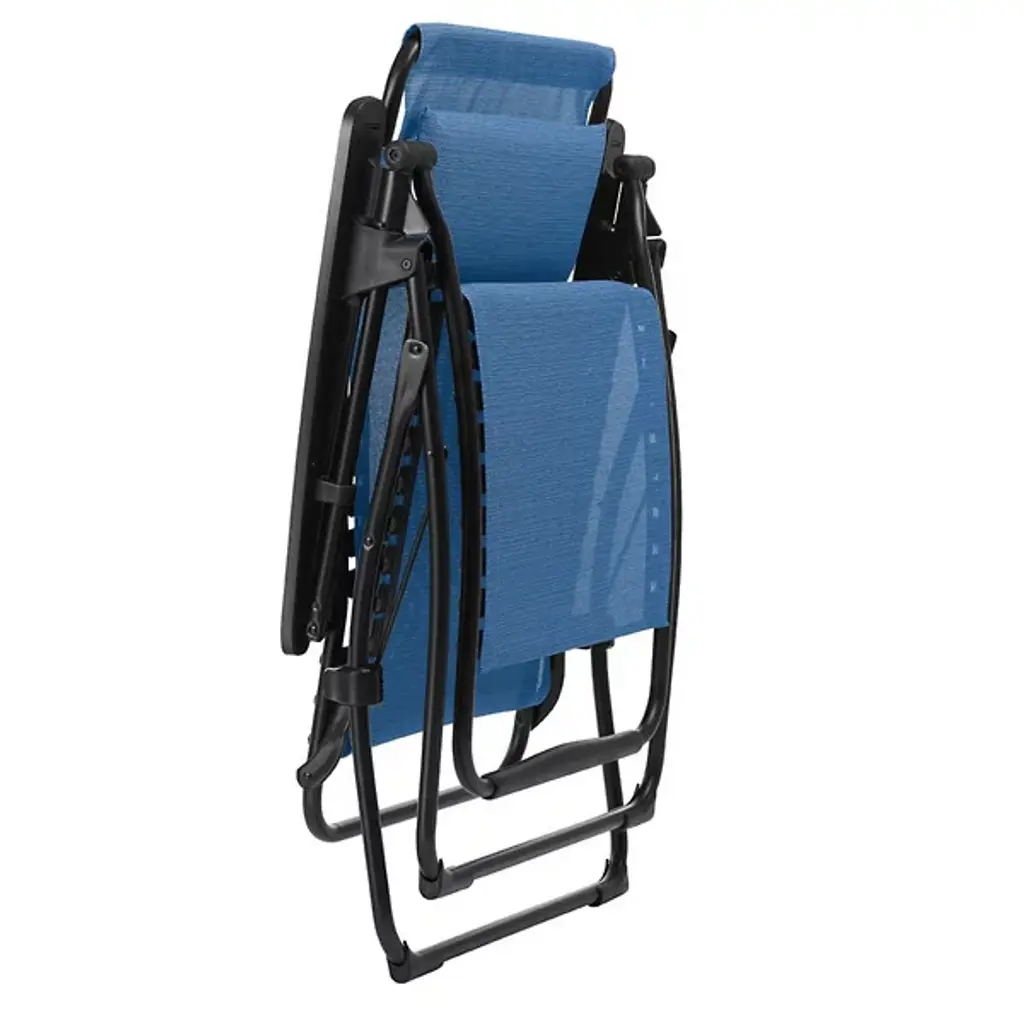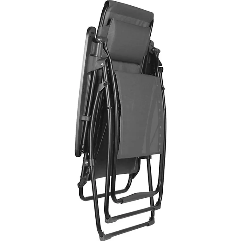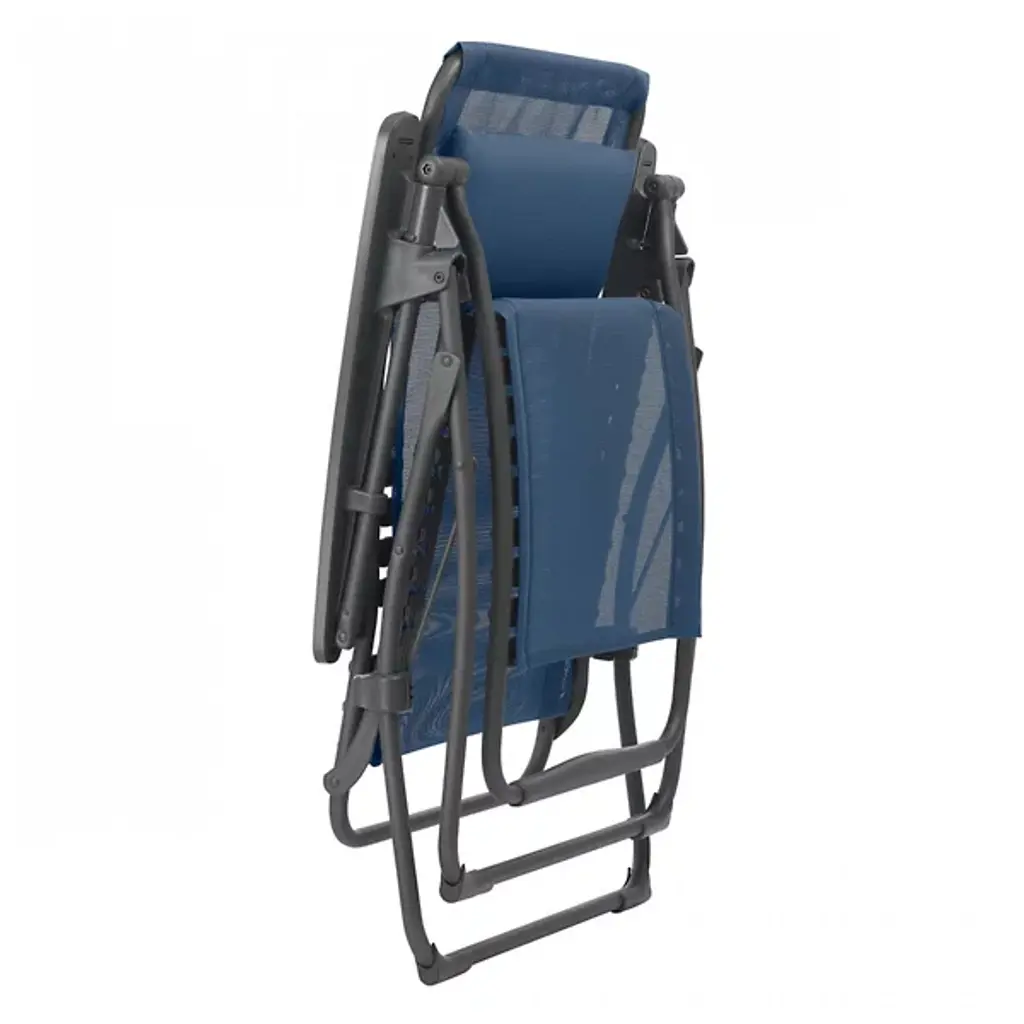 The Lafuma Futura Batyline Zero Gravity Recliner from Lafuma is the definition of comfort. Adjustable to several positions, this chair allows for sitting straight up or completely flat, and also contains several extra features such as a movable headrest and a footrest. The Batyline fabric is practical and stylish, designed particularly for outdoor uses as it resists wear and tear and UV exposure. Ensured to last for years to come, this recliner will be a central point in family gatherings, parties with friends, and camping trips.