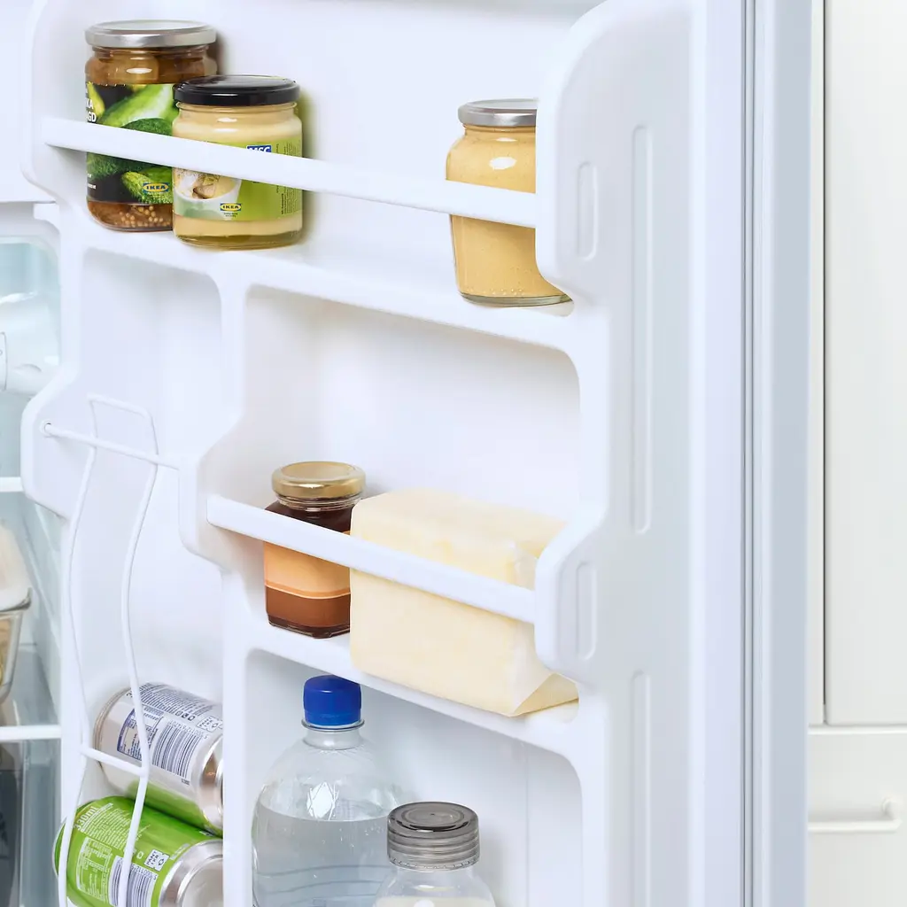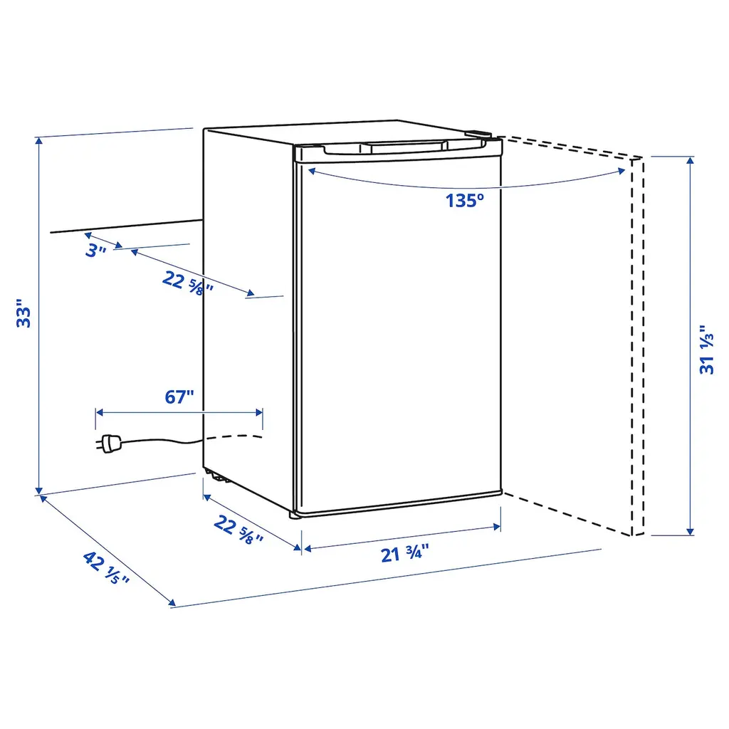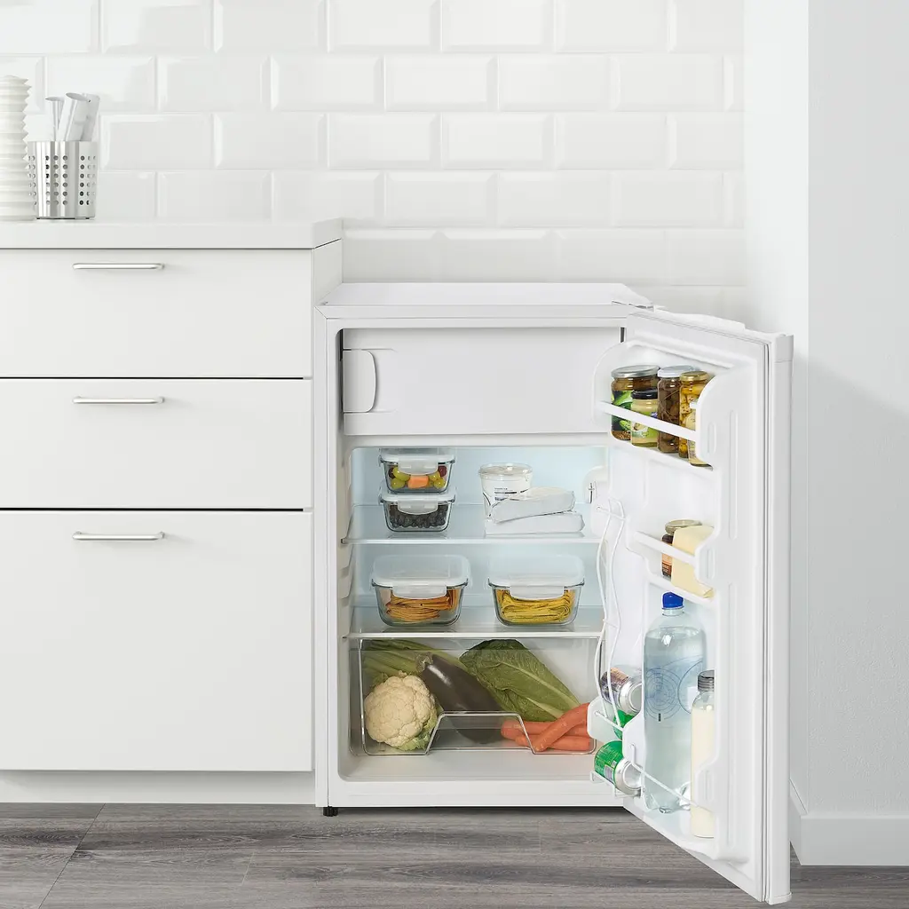 LAGAN Fridge with freezer compartment - compact/white 4.0 cu.ft. 2-year warranty. Read about the terms in the warranty brochure. You can customize your storage using 2 adjustable shelves. Free-standing; easy to place just where you want it in the kitchen. ENERGY STAR® certified. Voltage: 115V.