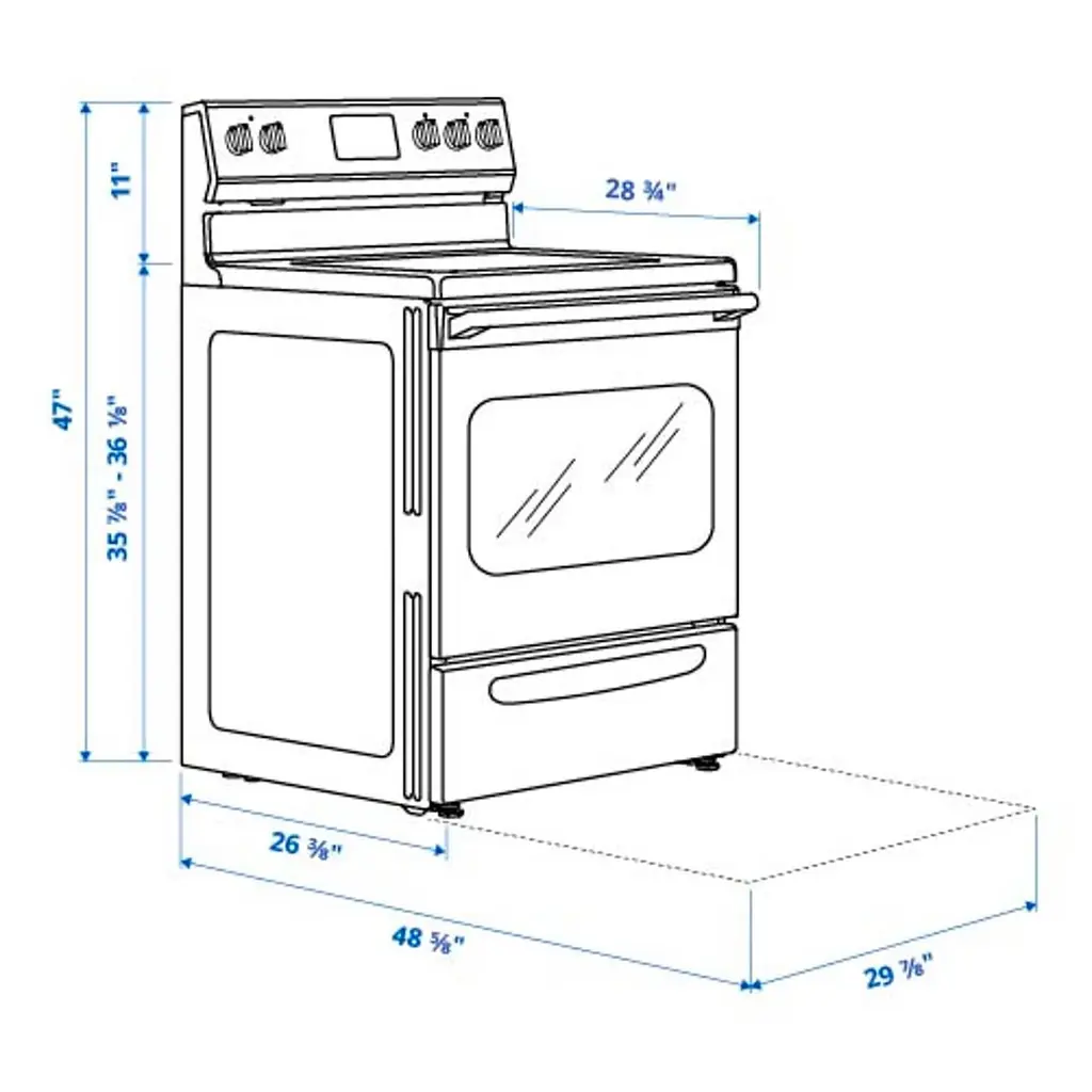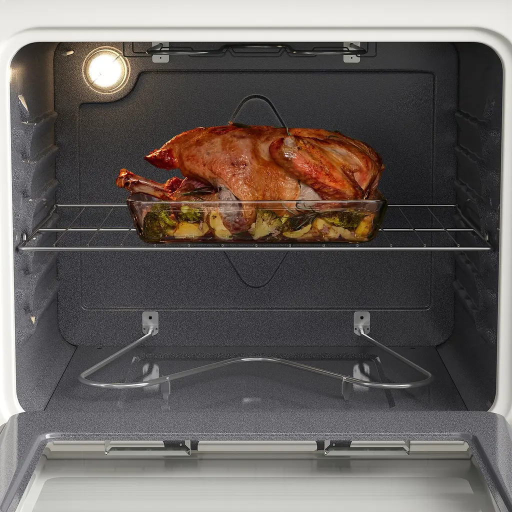 LAGAN Range with glass ceramic cooktop - white. 2-year warranty. Read about the terms in the warranty brochure. The warm zone element keeps the food at the right temperature until everyone is ready to eat. One of the elements is expandable to accommodate various sizes of cookware. Voltage: 240V.